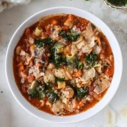 And of course, I have to use my favorite fire-roasted tomatoes to make this minestrone! That’s a given. Totally predictable.