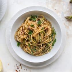 The asparagus would normally be cooked a little too much for my liking, so I was shocked at how much I love it here. I tend to roast my asparagus to golden, crispy bits. Boiling it with noodles is not my preferred method of consuming the veg. But when it’s combined with the lemon, garlic, mascarpone and pecorino, it tastes like a big bite of spring. It won’t be bright green and it won’t be crisp either, but it’s still delicious!