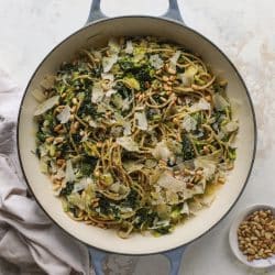 Shredded Brussels Spaghetti with Kale + Pine Nuts