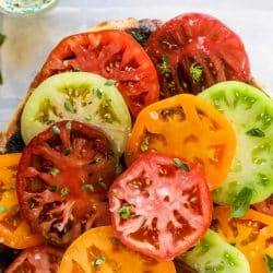 I definitely will try this recipe…this is exactly the way our heirlooms look so that’s a good thing! I actually do have a framed picture in my kitchen of heirloom tomatoes and it always makes me think of this time of the year when our plants are 8-9 feet tall (really!) and just loaded with fruit. Tomatoes are all we grow along with some herbs so tomatoes become a full time job processing and eating them. I roast them and freeze them in containers to use all winter long and they make the BEST sauces!