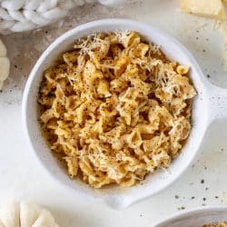 This pumpkin cacio e pepe is just like the classic pasta dish with a hint of fall. Pumpkin, black pepper and parm come together to make the delicious sauce!
