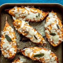 Twice Baked Sweet Potatoes with Pumpkin and Crispy Sage