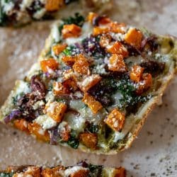 Roasted Butternut Squash French Breads with Pesto and Kale.