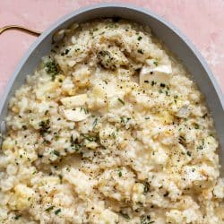 Um, why am I on a no carb diet? I want to make this immediately!!!! Cauli and brie are two of my favorite things. I love making risotto in the Instant Pot, and I can’t wait to try this oven version. Once I can fit into my pants…
