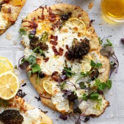 Cheesy Lemon Flatbread Pizza with Hot Honey