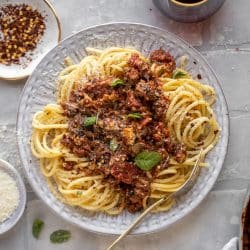 lentil bolognese on a plate