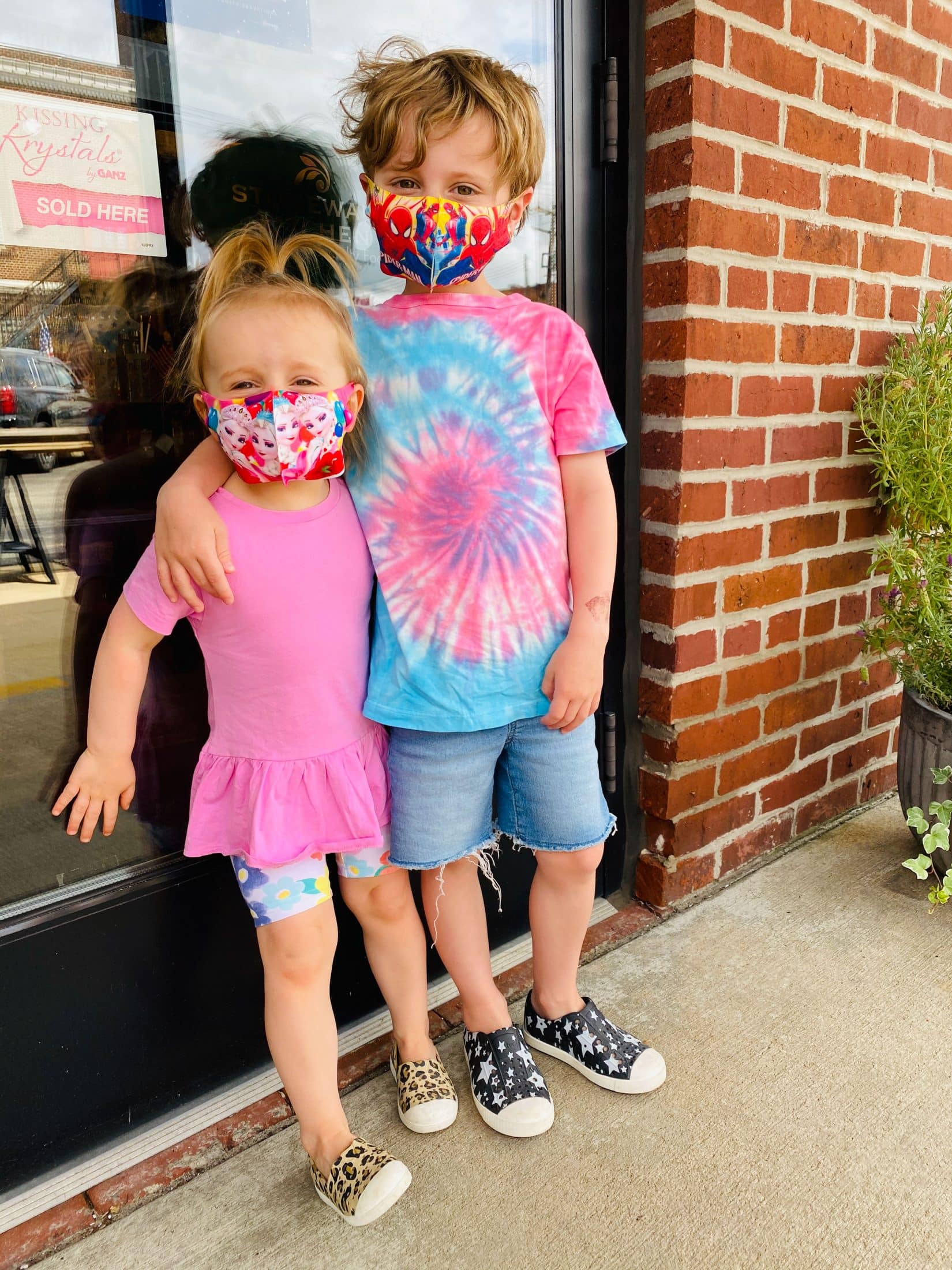 And these cuties too! We didn’t end up going in anywhere, but went with my mom to run an errand and they wanted to put on their masks while we waited.