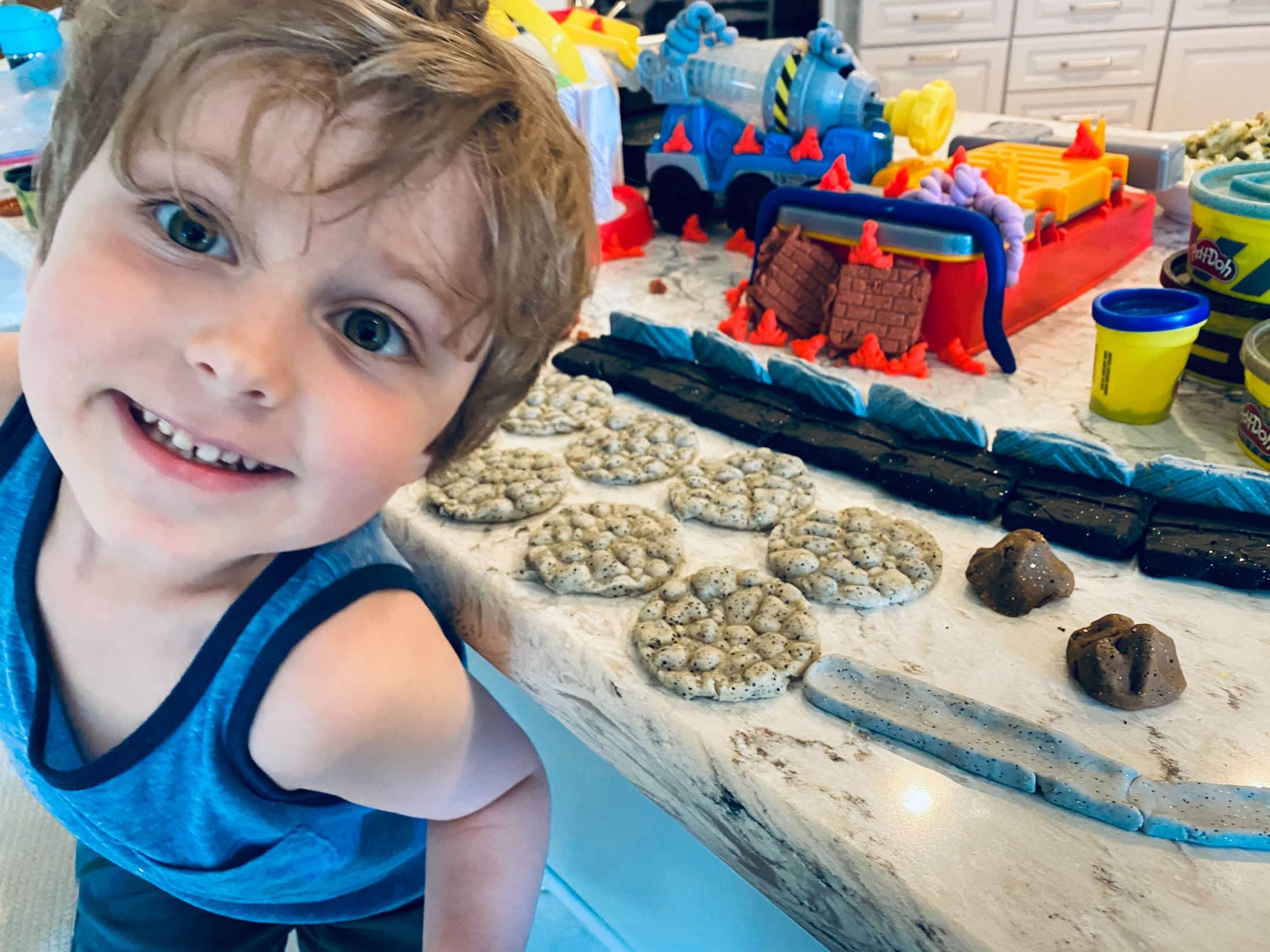 One night after Emilia went to bed, Max and I made this big playdough… thing. I don’t know what it is. I think he called it a firehouse. Haha.