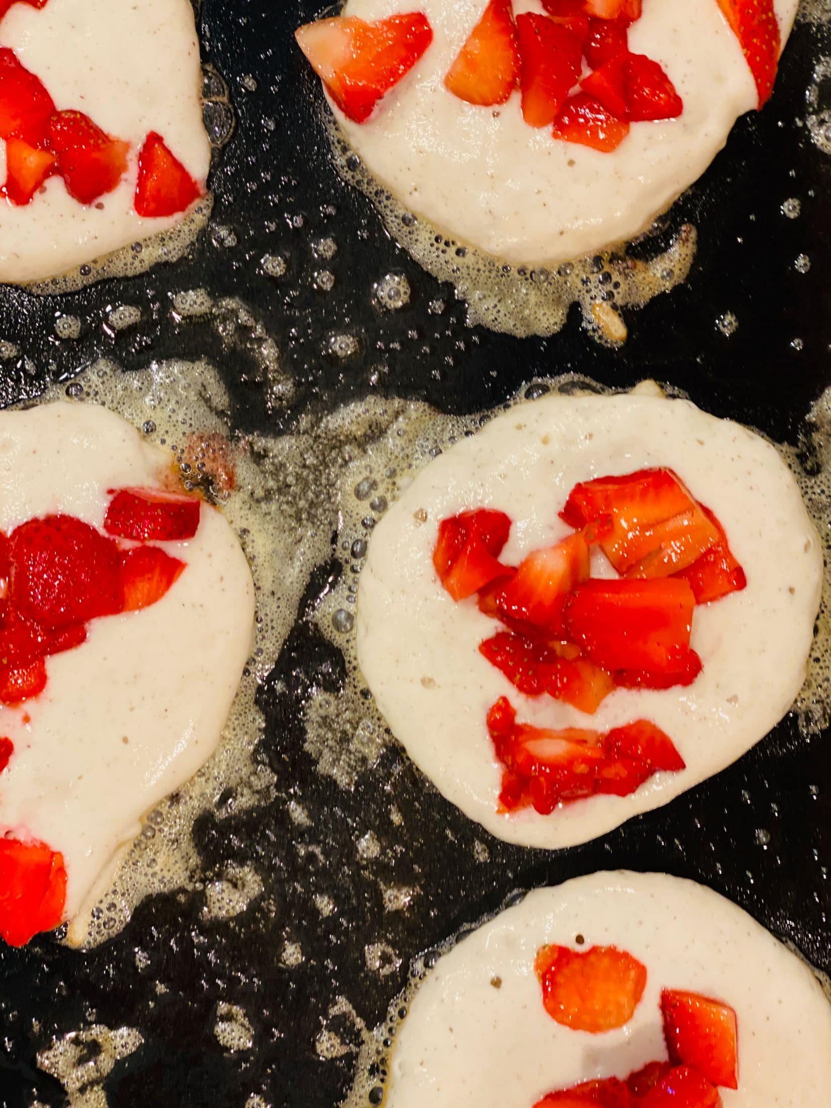 I made Eddie strawberry pancakes for Father’s Day. They are his fave and we only ever make them when strawberries are in season.