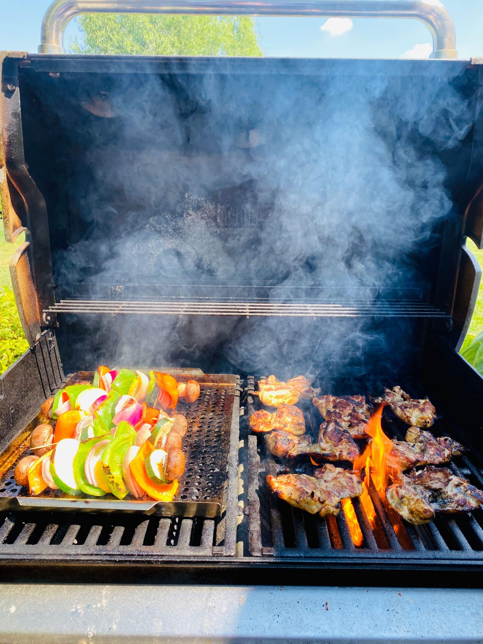 And maybe the best house salad I’ve ever made. We also had chicken drumsticks on the grill, hot dogs, mac and cheese, baked beans and grilled asparagus.