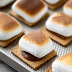 - Place your oven rack on the lowest level of the oven. This is important! We’re using the broiler, and placing it on the lowest rack gives the marshmallows and chocolate a minute or two to toast and melt before burning.