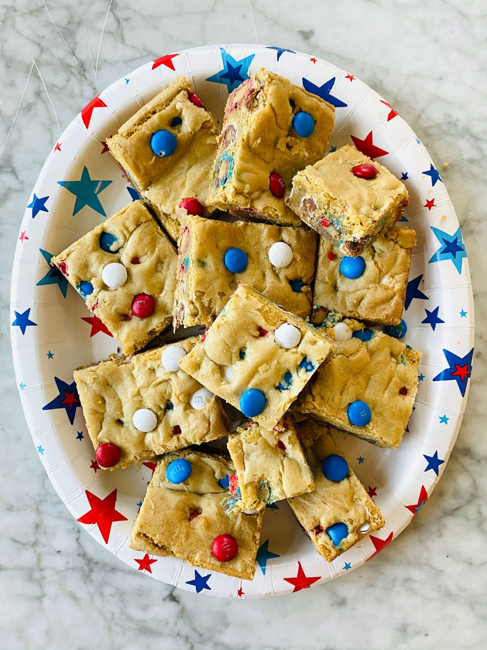 I made my brown butter cookie bars with peanut butter m&ms for the 4th. OMG.