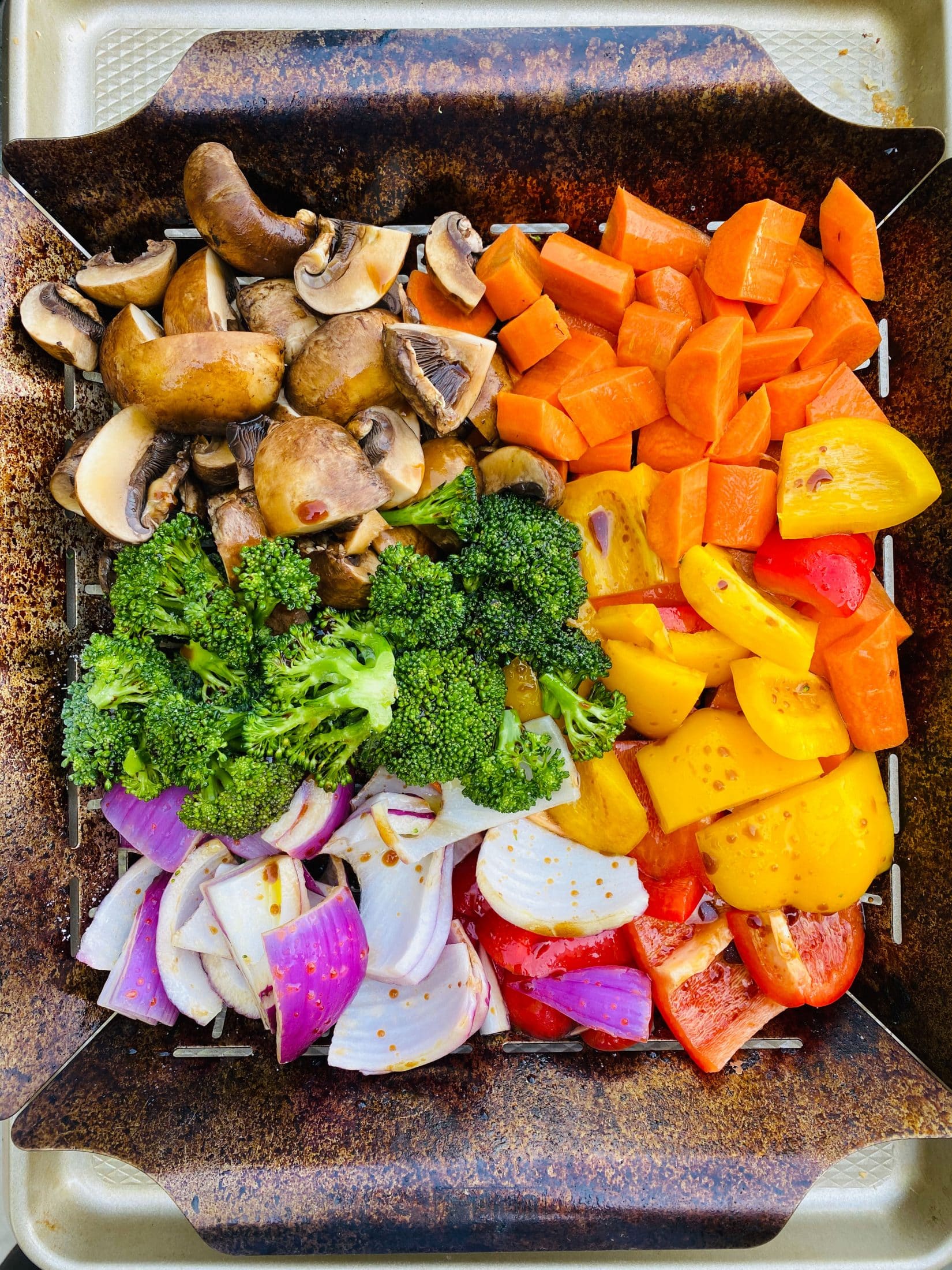 Grilled chicken, zucchini and mushrooms that we ate with some whole wheat penne!