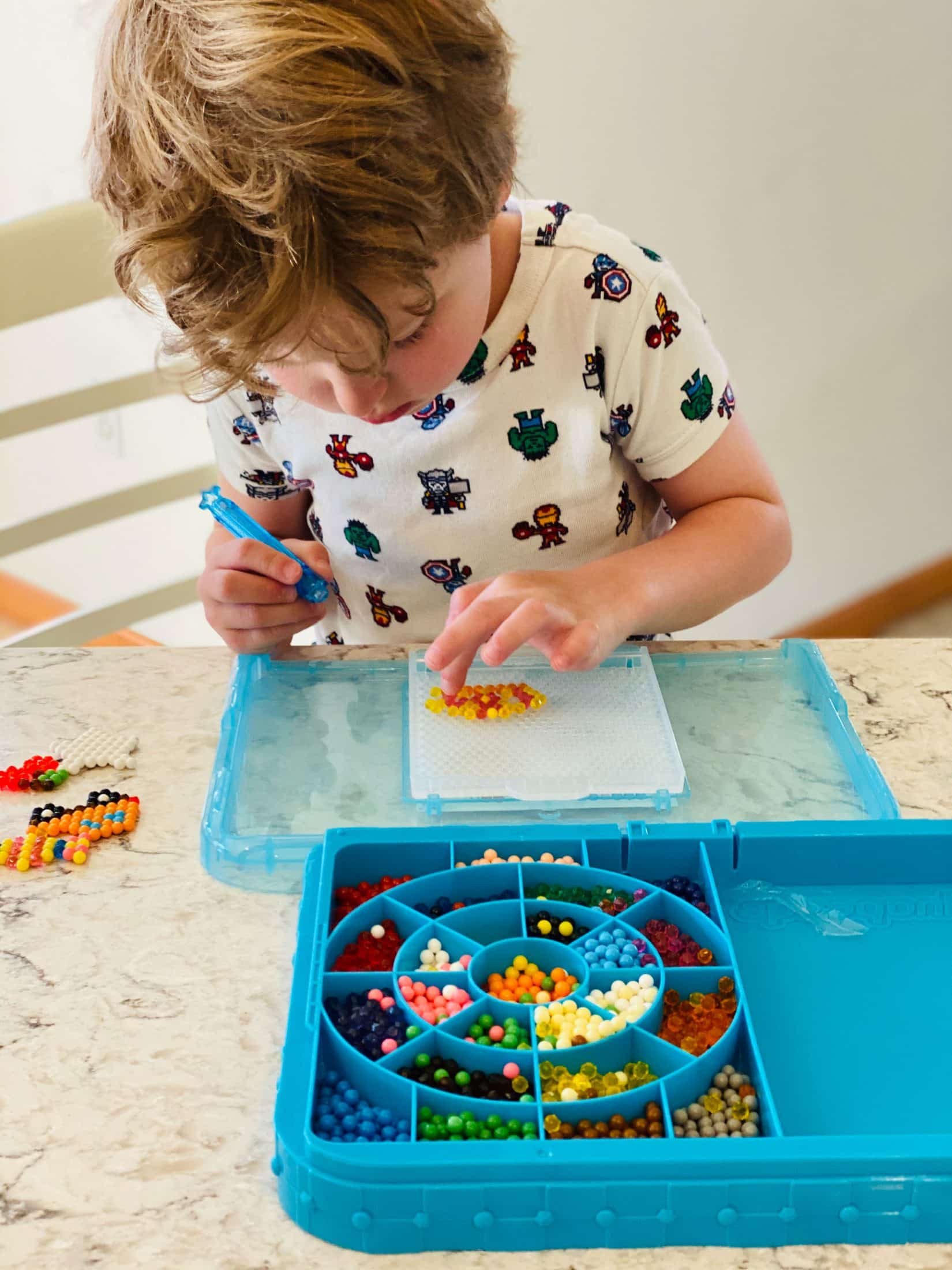 Right now we are obsessed with aquabeads!! We discovered them through one of Max’s friends a few months ago. He loves doing them and it’s a fun craft he can do on his own too. Pretty sure I took this at 6:30am. Oye.