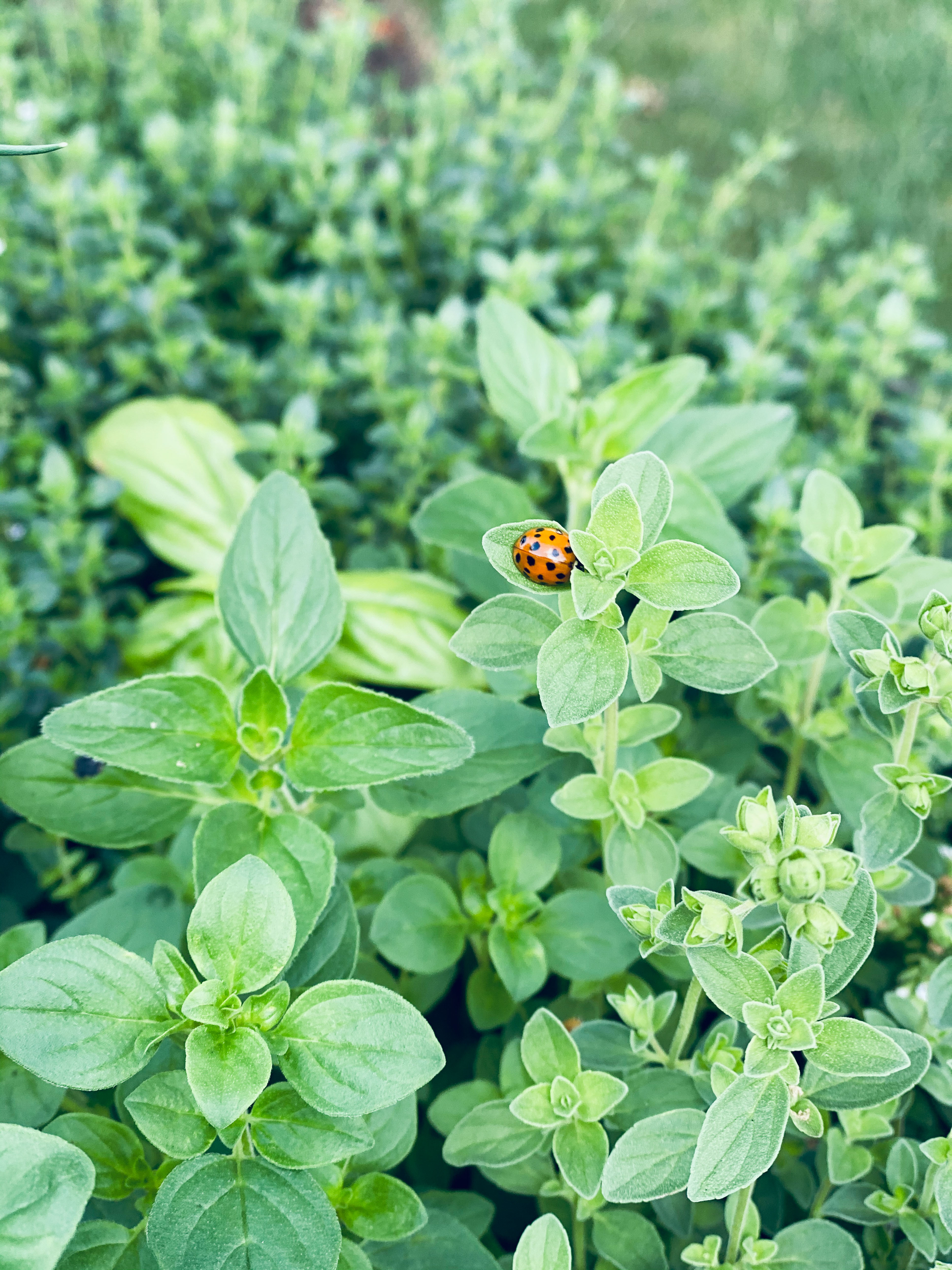 Love the apron Emilia is wearing in that Lego pic, I hope she was making food out of them, it would feel so appropriate. Don’t you love it when kids want to color code blocks? I love that when the girls were little. Can’t wait for the lemon butter chicken. It sounds divine.What a huge ladybug hanging out on your oregano.