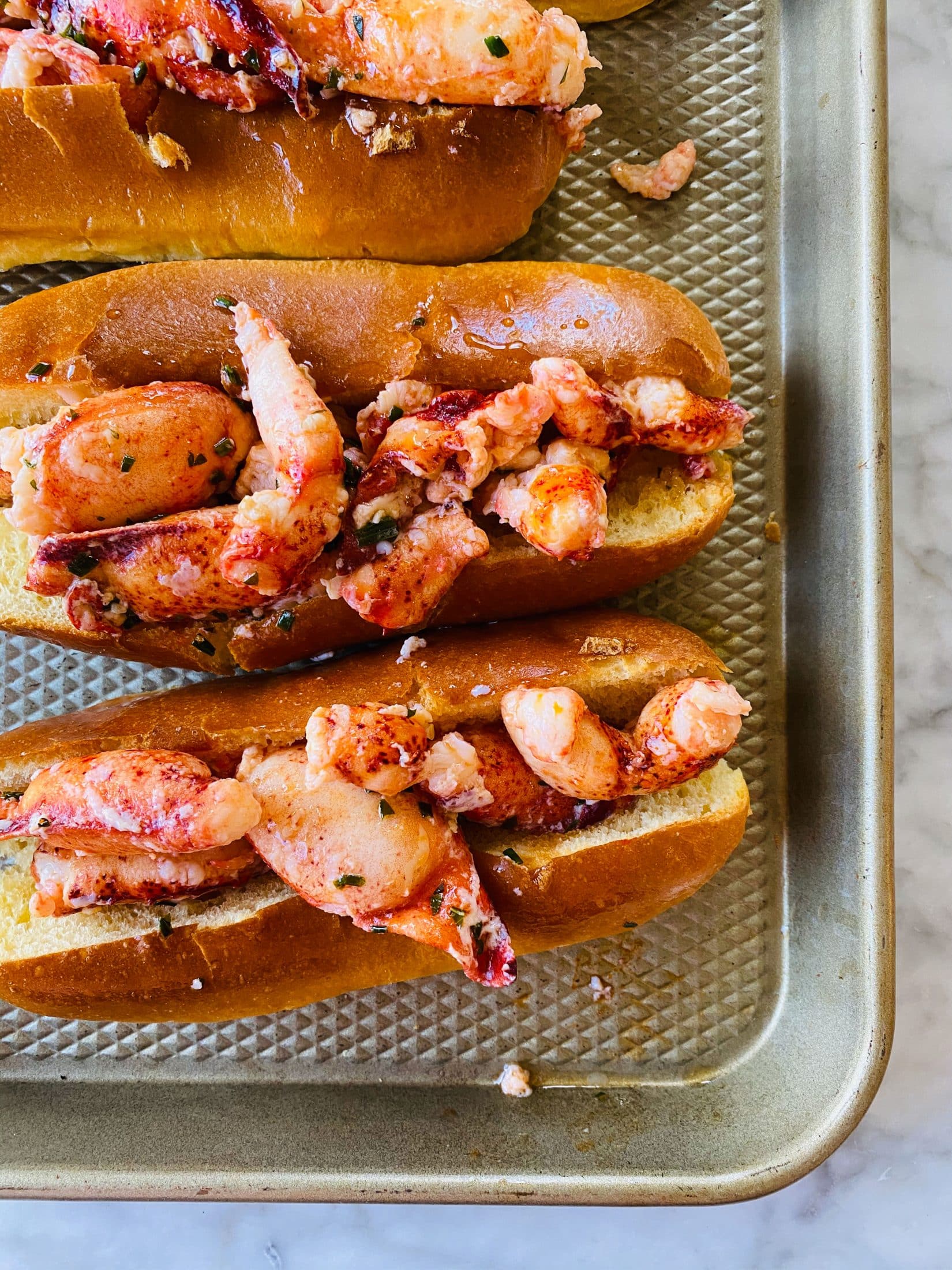 My eyes bugged out at that lobster in the pan of butter…and then piled high on those rolls!! Connecticut stlyle rolls are the best!!!!
