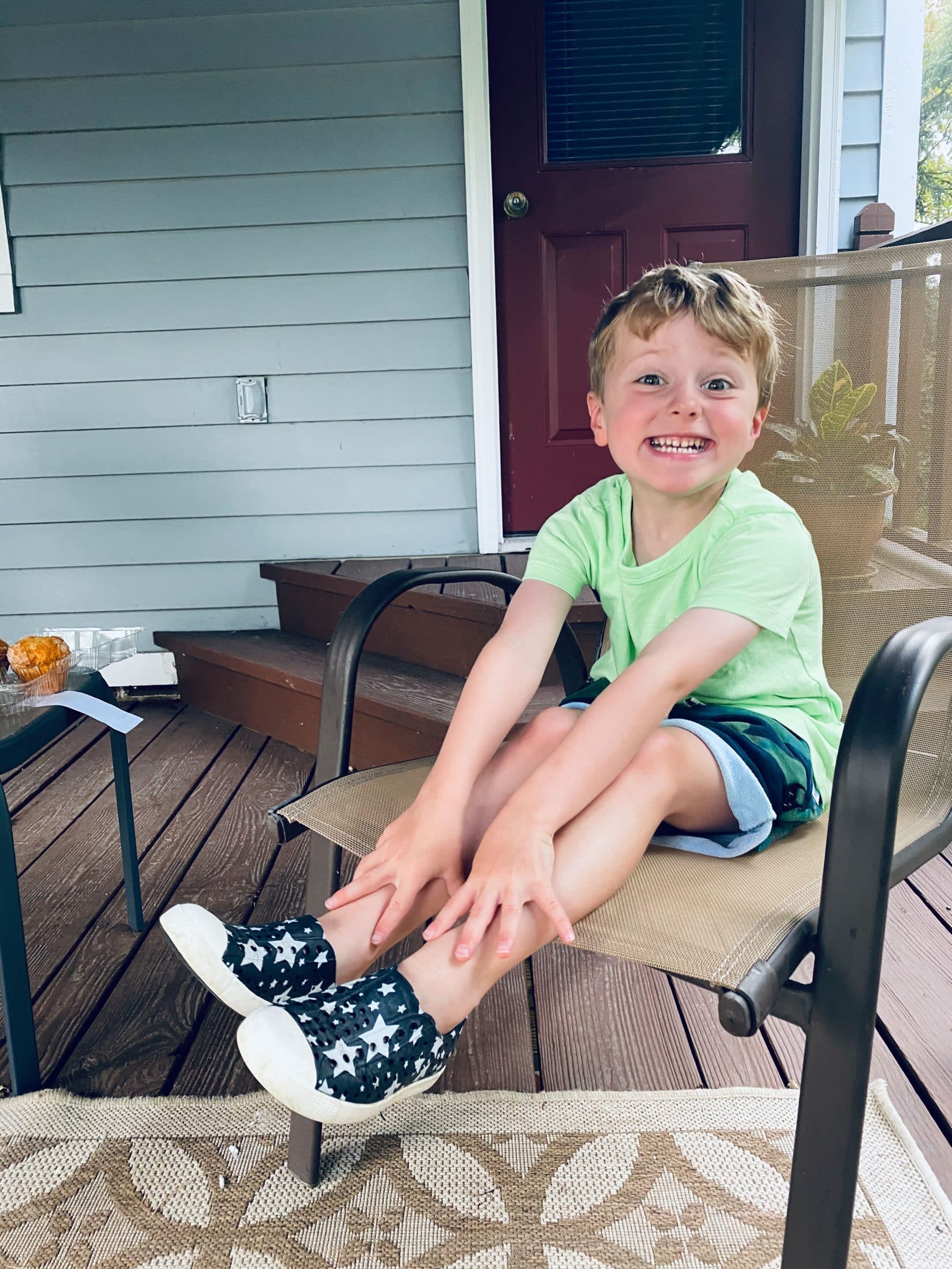 Morning muffins at grandmas with shoes on the wrong feet.