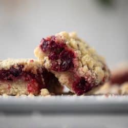 I have a strawberry version here on the blog and they are just so easy, so delicious and such a hit. You can truly use almost any fruit you love. The cranberry just adds such a wonderful seasonal flavor. Sweet and tart, which is the perfect complement to the buttery shortbread crust and crumble.