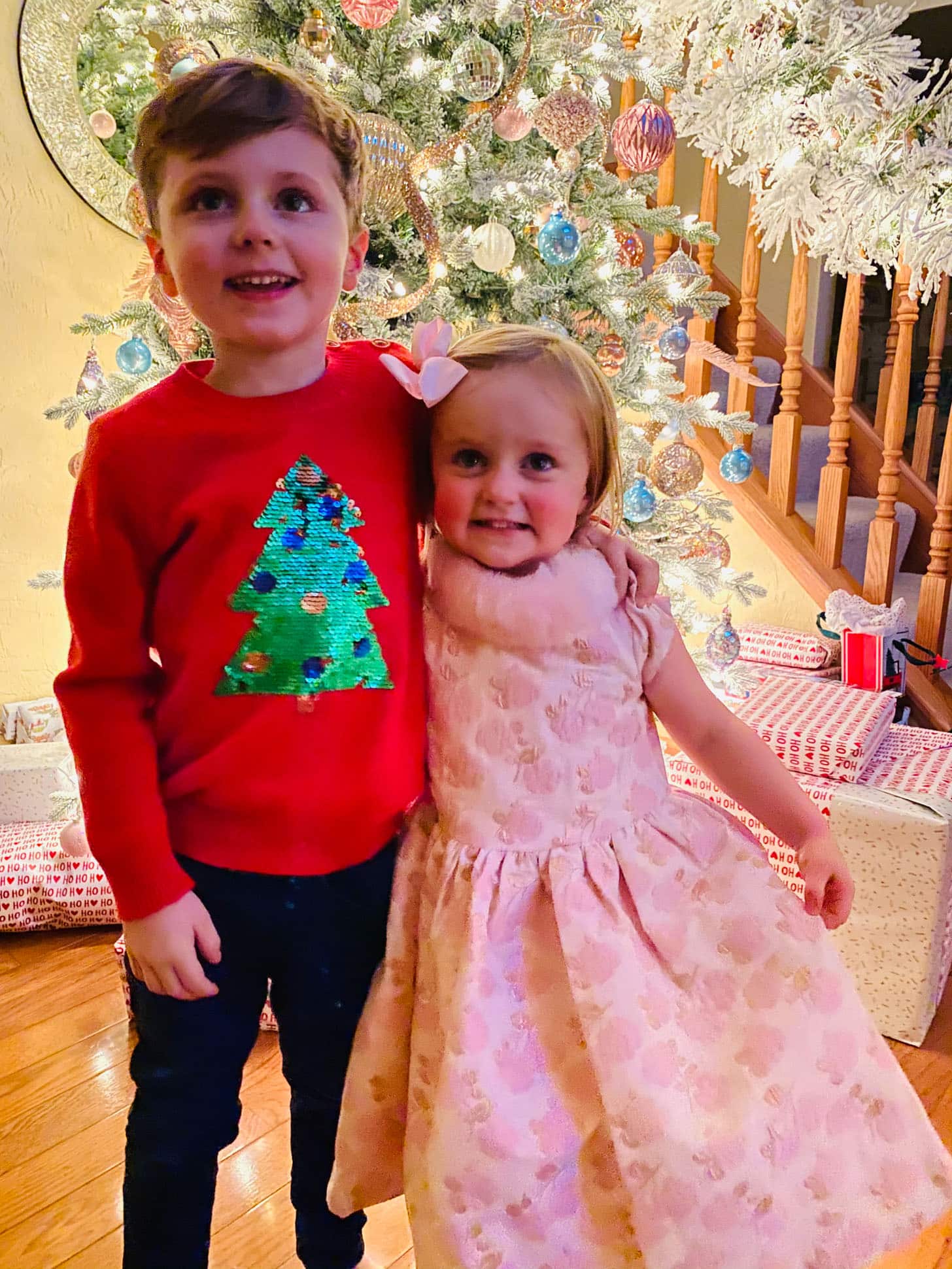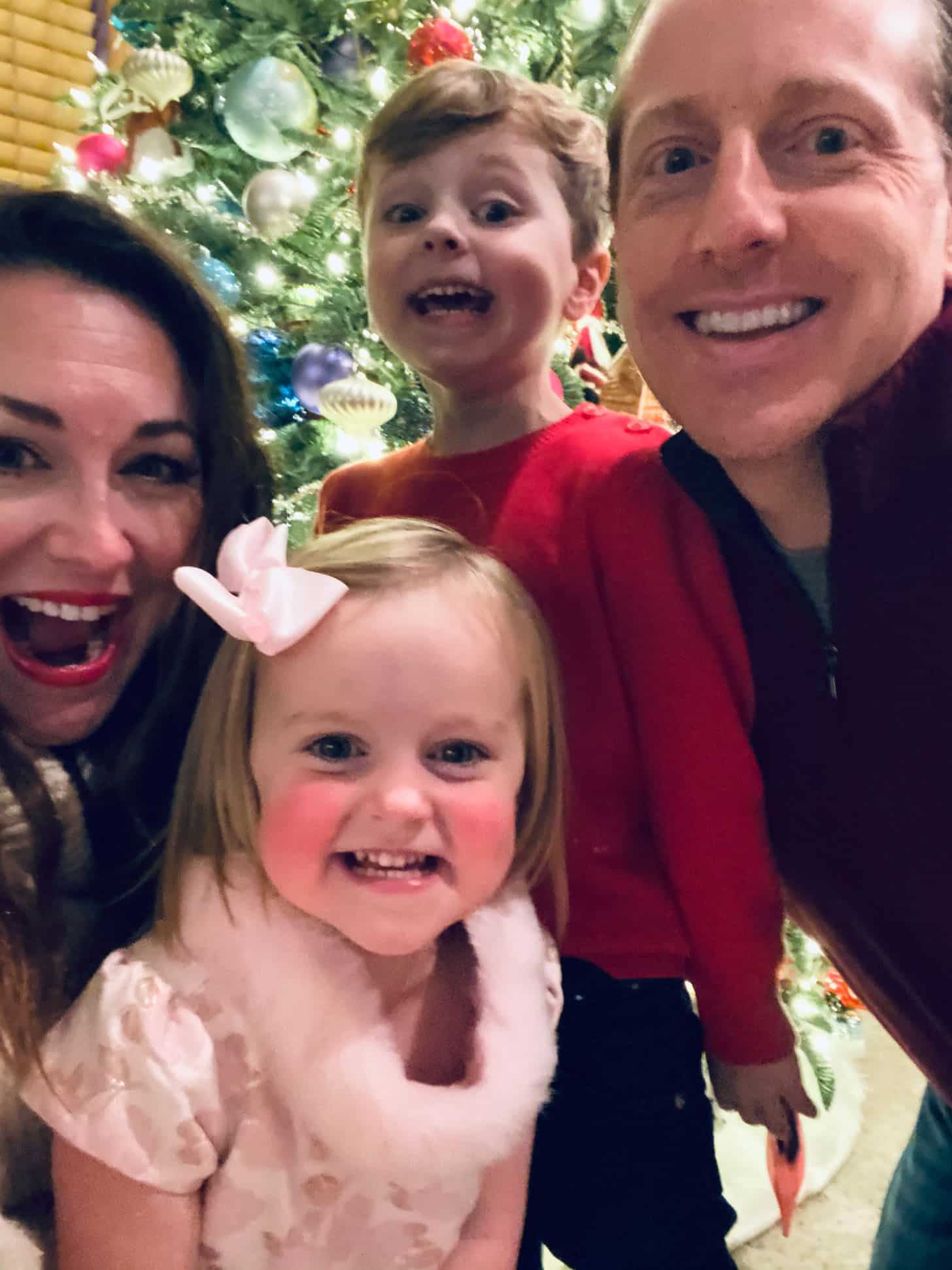 Congratulations on baby #3! Love all their Christmas pj’s. I’m with Emilia, I think the lights were my favorite ones too. Loved her Christmas dress. Hold out hope he will be that excited next year. Especially to keep the magic alive for Emilia and the new baby.