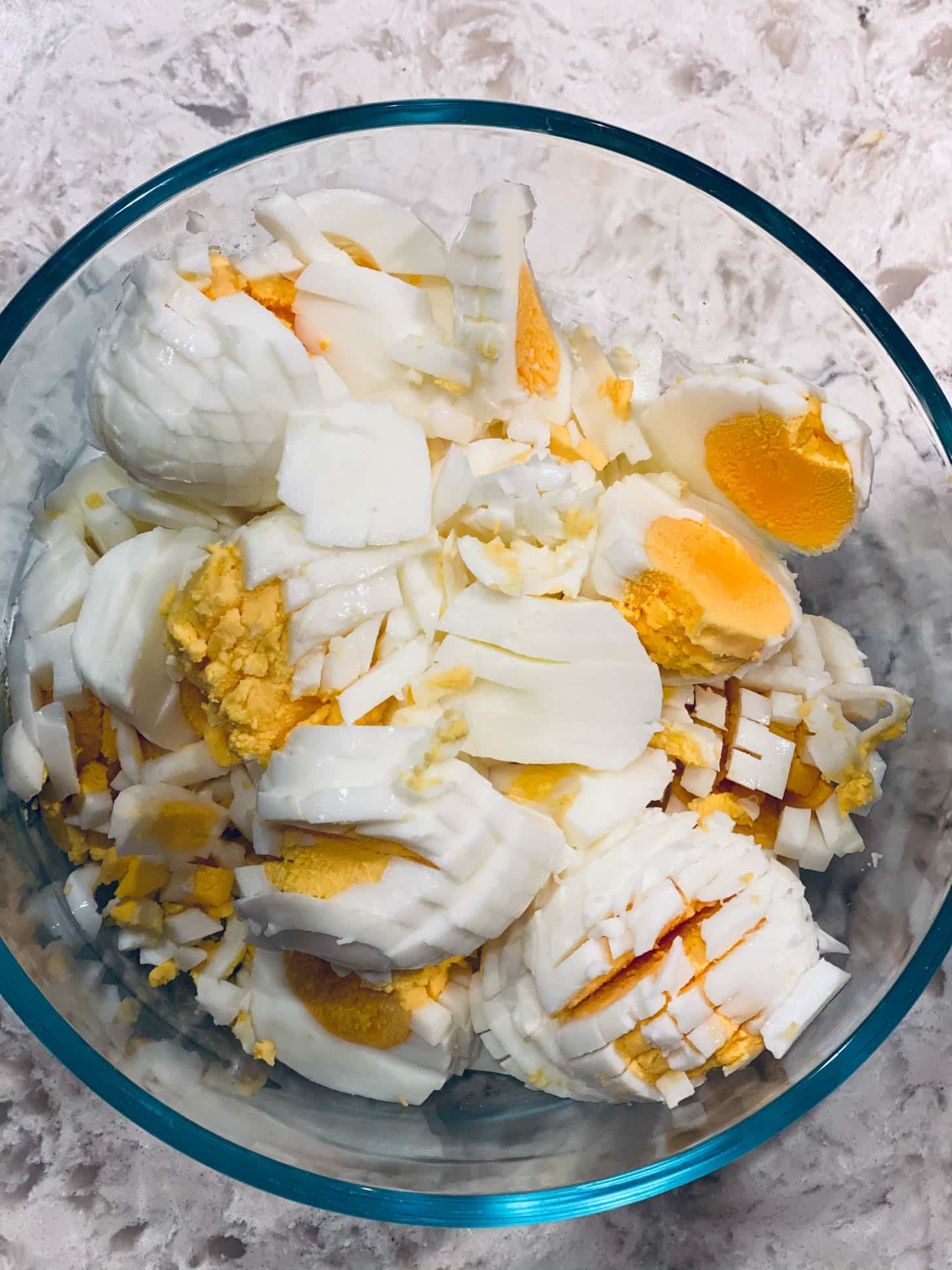 Starting a batch of egg salad for the week. My fave.