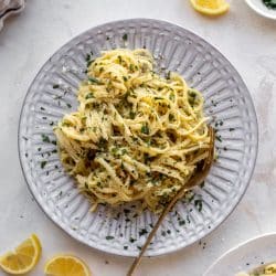 This is one of those meals that will be as flavorful as you make it. If you really love garlic, add in more. As long as you’re using a high-quality parmesan, it will bring a nutty, savory flavor to the dish. I suggest tasting both the sauce and the pasta dish as you go so you can add more salt and pepper where necessary. And don’t forget to salt your pasta water so it imparts flavor too! It’s such a simple dish that building the layers of flavor is where this will shine.