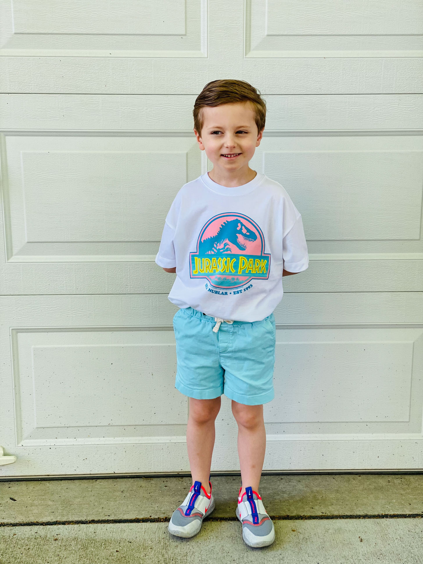 We had to run to the mall on Thursday and you would have thought the kids were in disney world. They were so excited to walk around! And then Max found this shirt in Old Navy and was thrilled. Both kids love Jurassic Park (and dinos in general) so we had to get matching.
