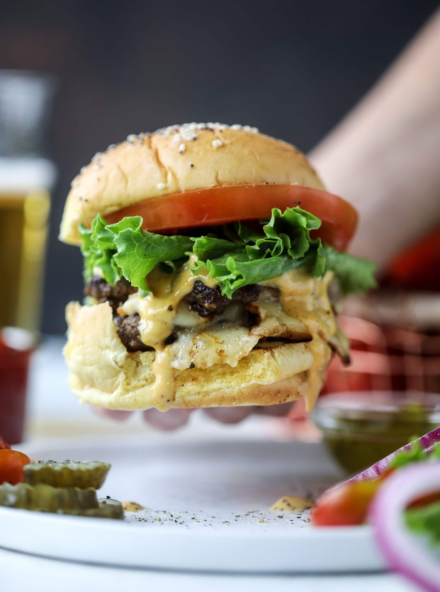 My cheeseburger salad with dill pickle vinaigrette is also a fun spin on a burger.