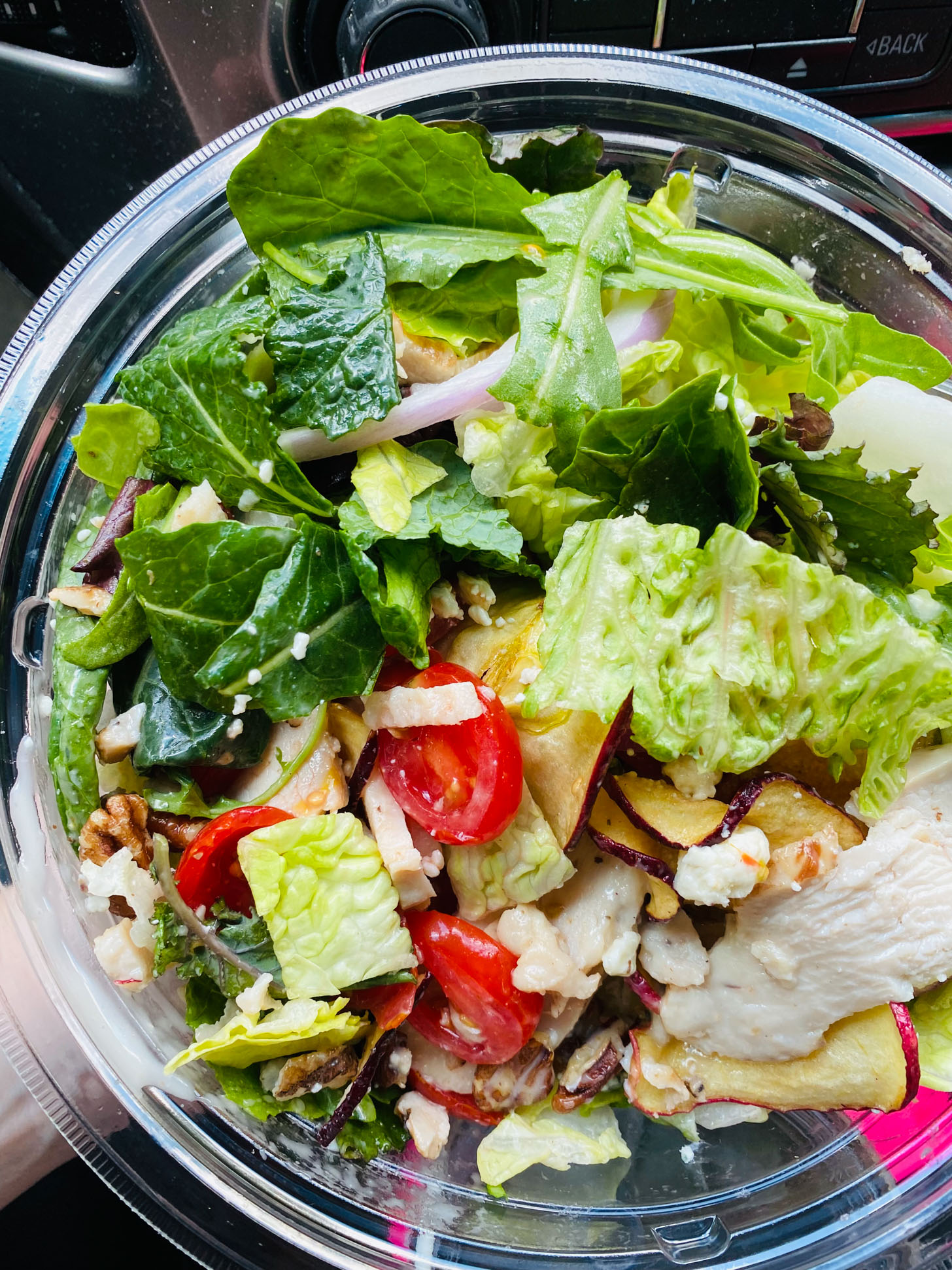 Um little did I know that this panera salad in the school car pick up line would be my last pregnancy meal!