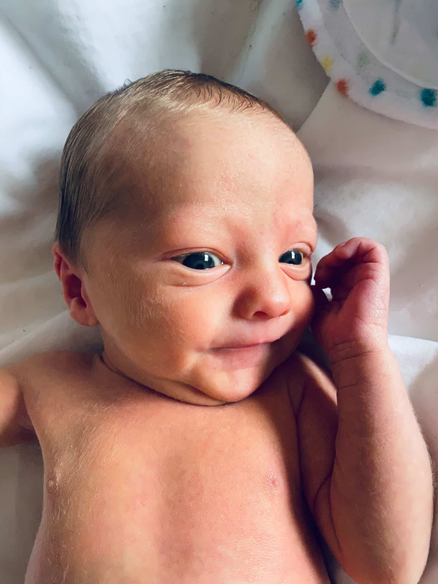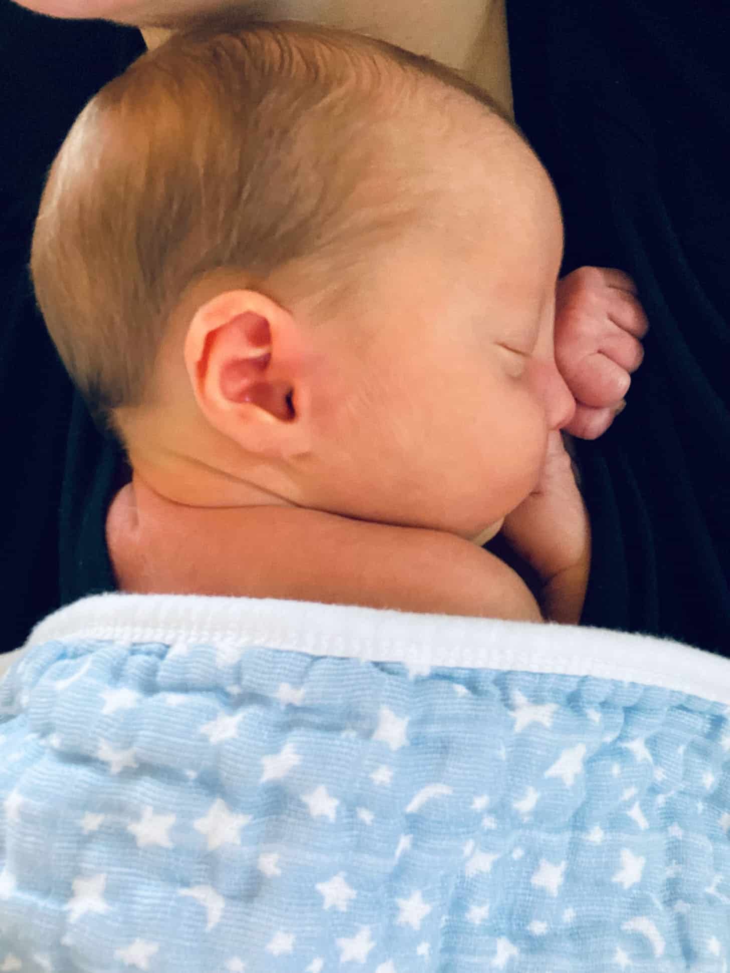 The minute I set him on his back, he rolls to his side! It scares the crap out of me but the doctor said he must have been positioned this way in the womb. He’s such a snuggle bug.