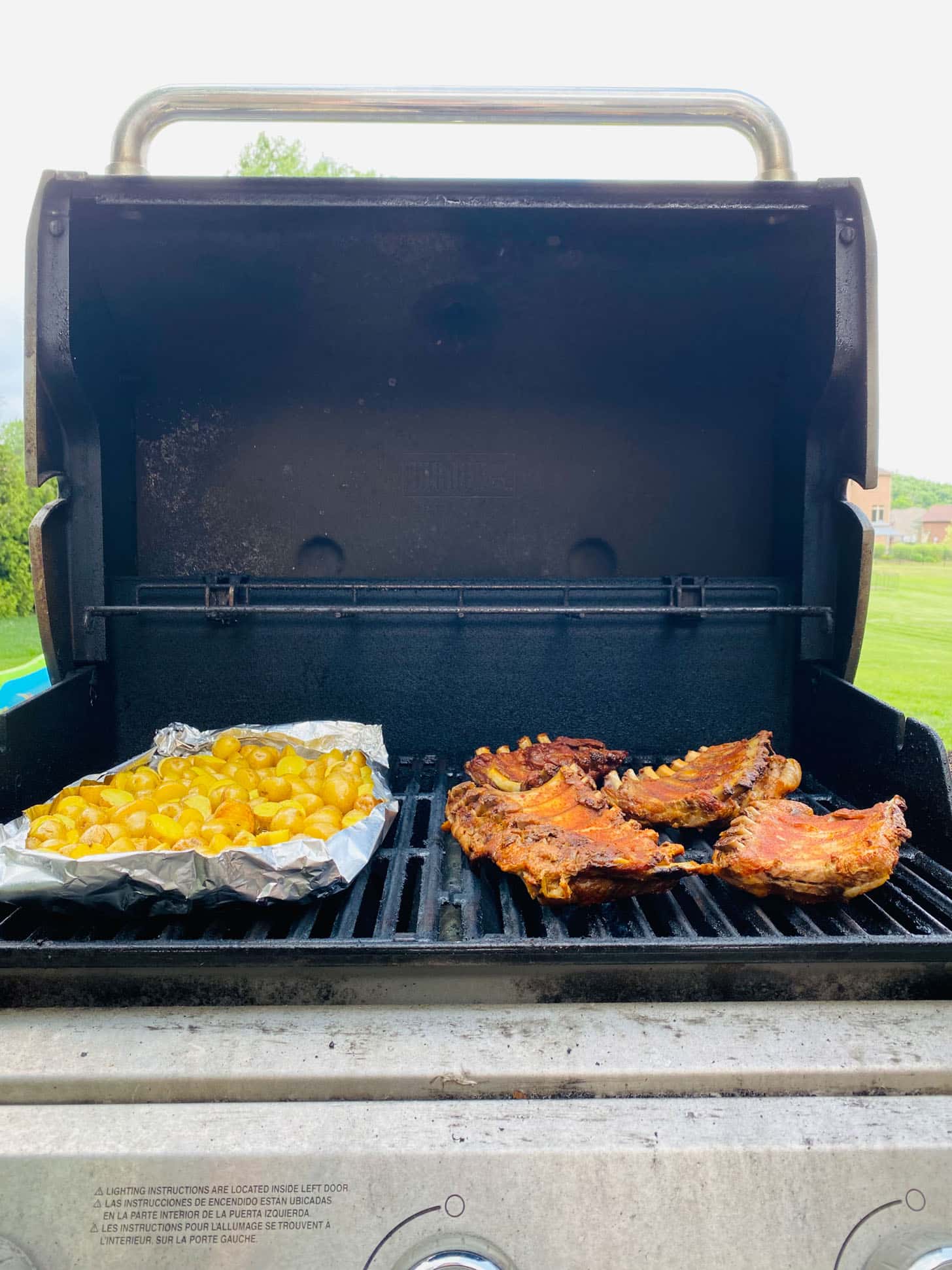 We made my root beer ribs and grilled potatoes and corn for dinner!