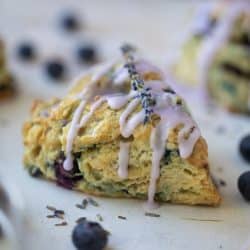 These blueberry lavender scones are a lovely breakfast or afternoon snack! Bursting blueberry scones topped with sweet lavender glaze.