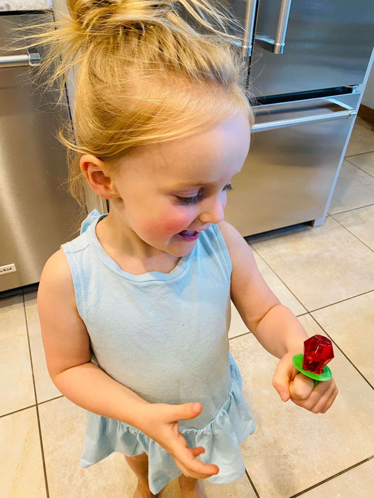 Emilia got her first ring pop in the birthday treat bag. So cute.