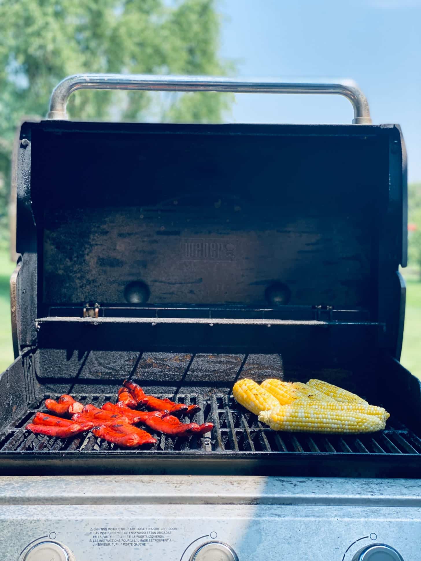 Grilled corn and smoked turkey sausage.