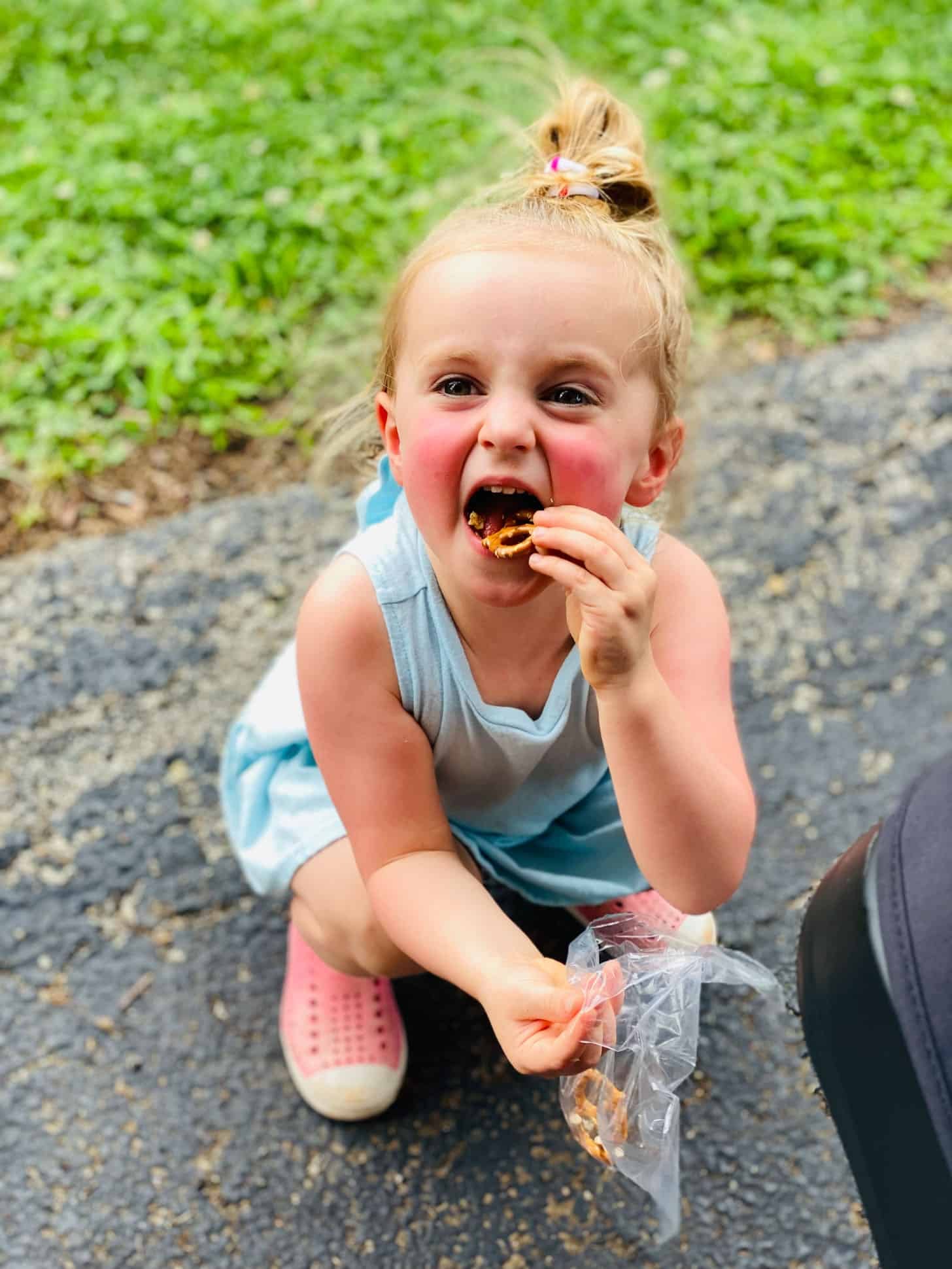 Wow Jordan is already 1 month old, and I feel like he is always giving you some side eye, and ready to attack with his legs up, so adorable. Love the ring pop, she is the queen of accessorizing after all. Love the hydrangeas, they are the prettiest purple, and snapdragons are one of my favorite flowers. Oh and funnel cake for dinner, YUM!!