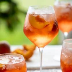 The peaches keep the drink cold, don’t water it down like ice cubes do AND add a little peach flavor to the drink. Which is incredible. It also often complements the rosé you’re using!