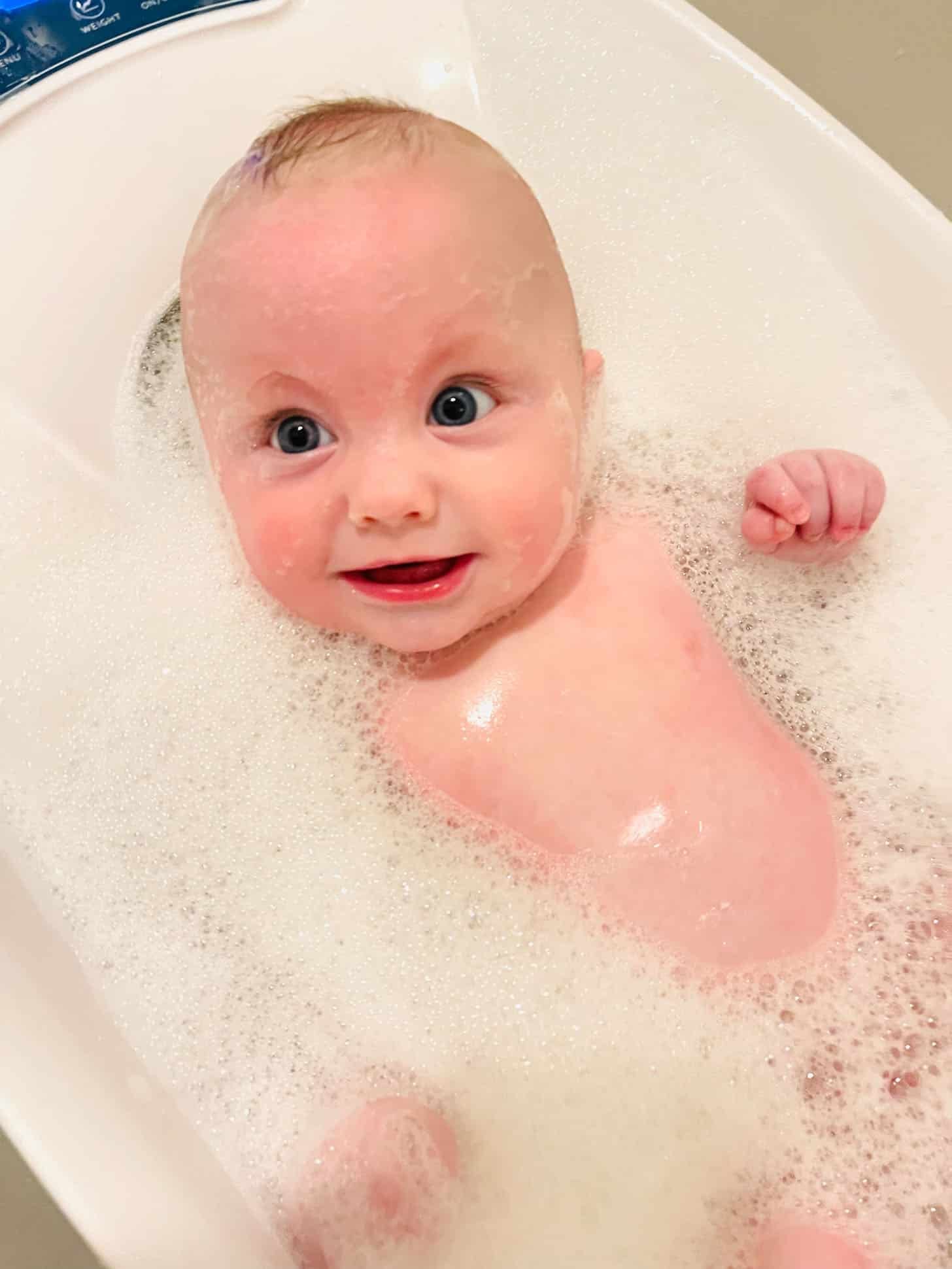 Baby in a bubble bath! He LOVES to splash and kick as hard as he can.