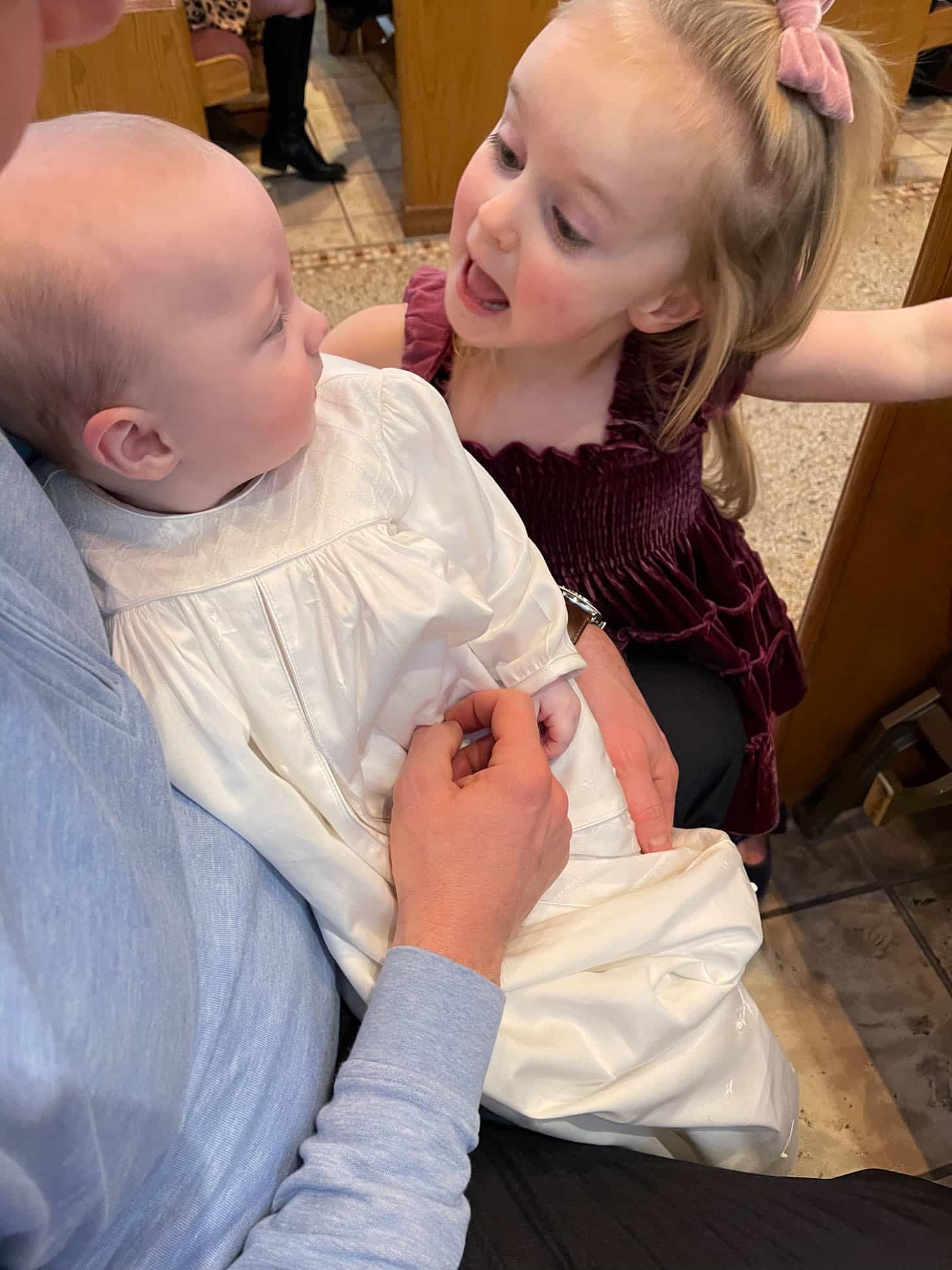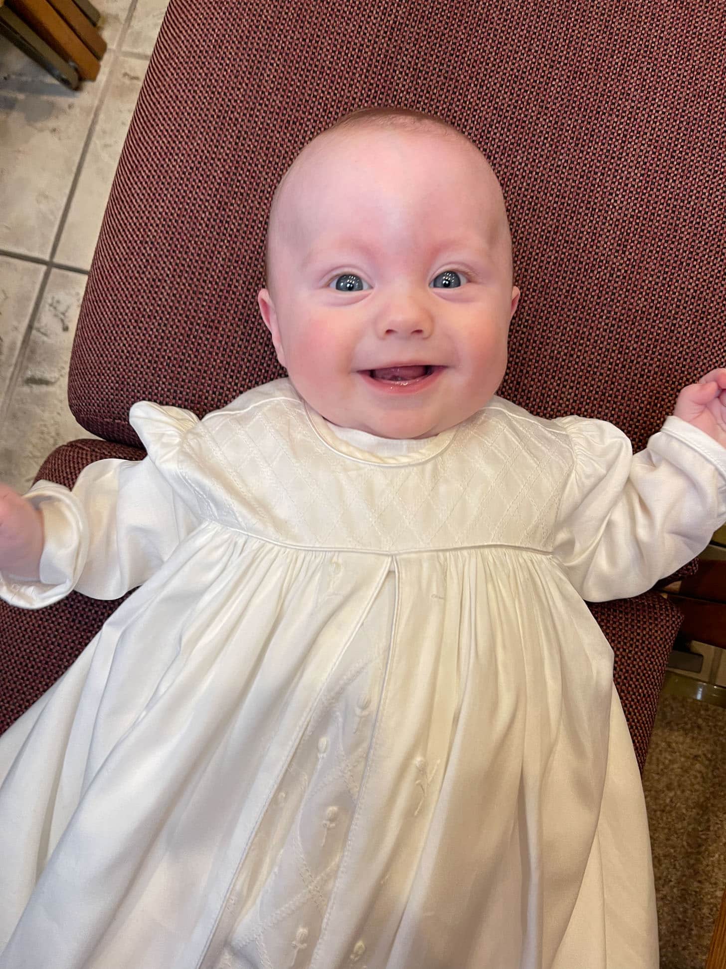 He did so amazingly well. The other kids were baptized around two months but with everything up in the air with the pandemic, we waited a bit longer with him.