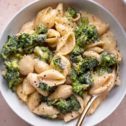 These broccoli shells and cheese are better than any boxed version! Super creamy, cheesy pasta shells tossed with broccoli florets. It’s the most wonderful meal!