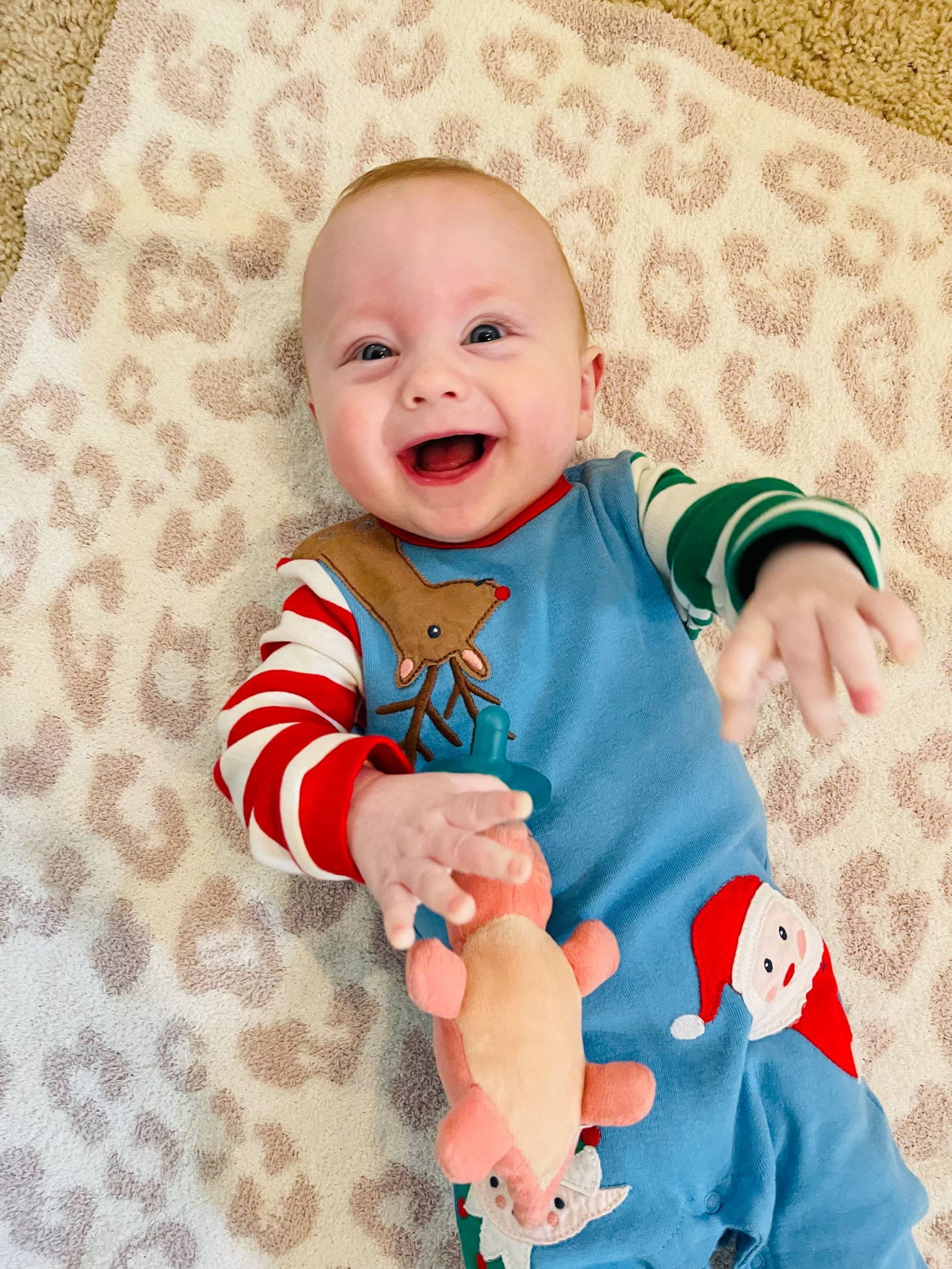 Love all the PJ’s as always, SO festive. I hope Jordan is always that smiley, he is the most adorable baby!! Love the mugs you used for your hot chocolate. Umm so can we get a weekly update on what the Elf on the Shelf is up too? especially with Max’s Birthday coming up. I know he likes to go all out!