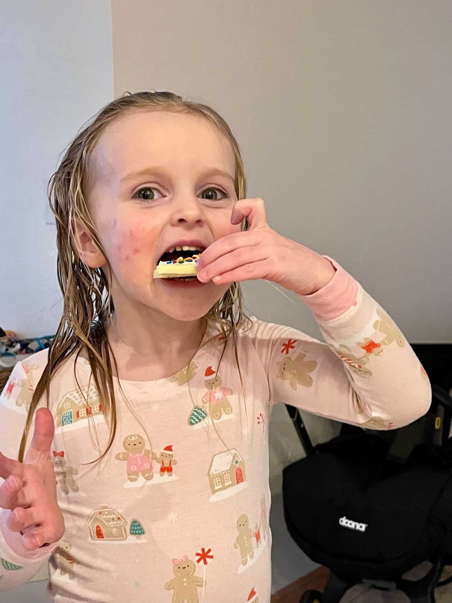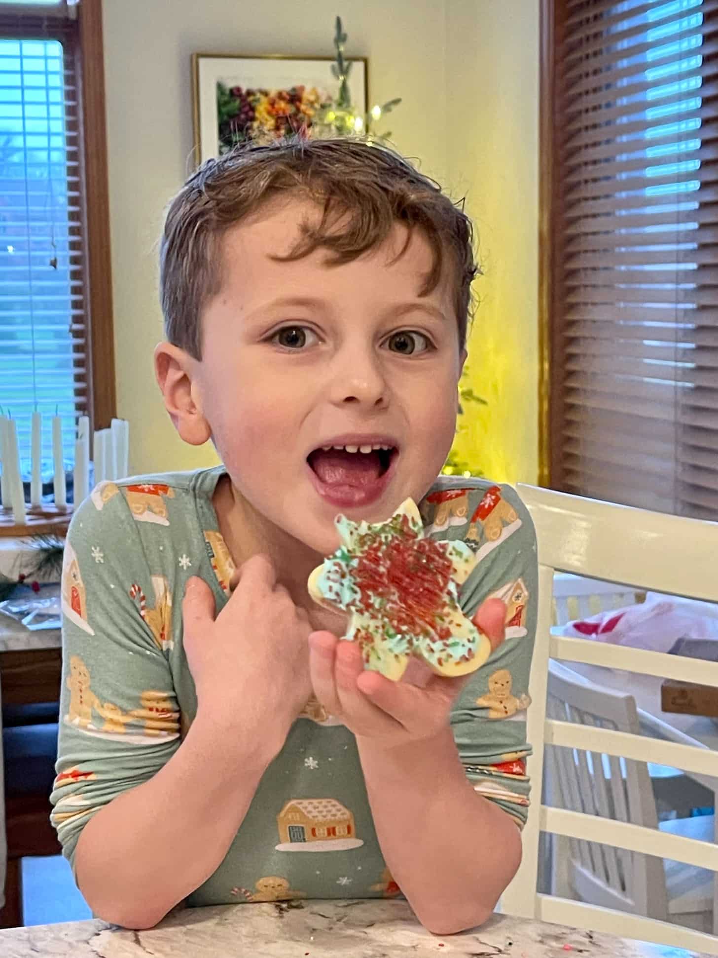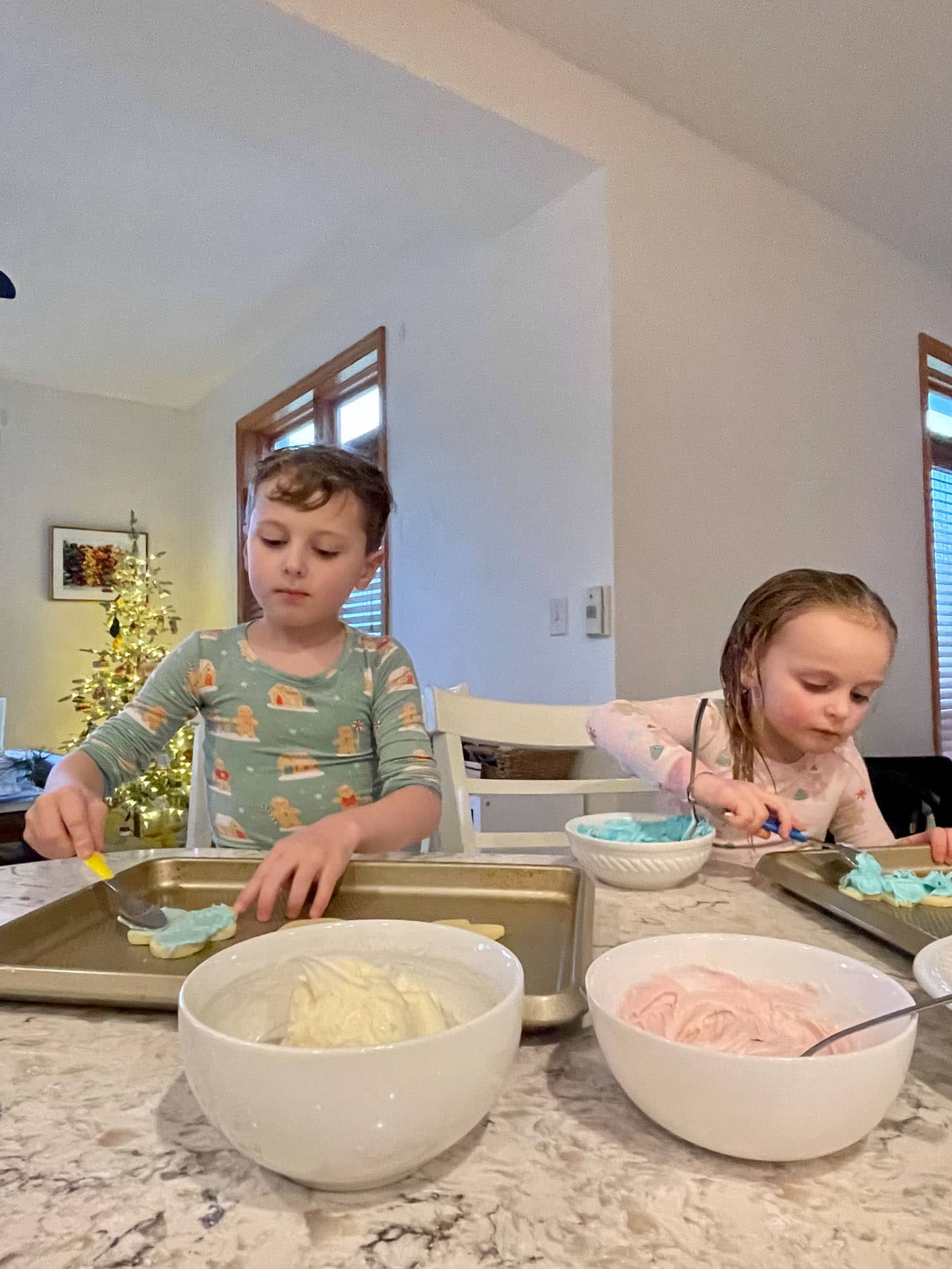 This is by far my most favorite new tradition! Don’t mind the powdered sugar all over our table from the cookies.