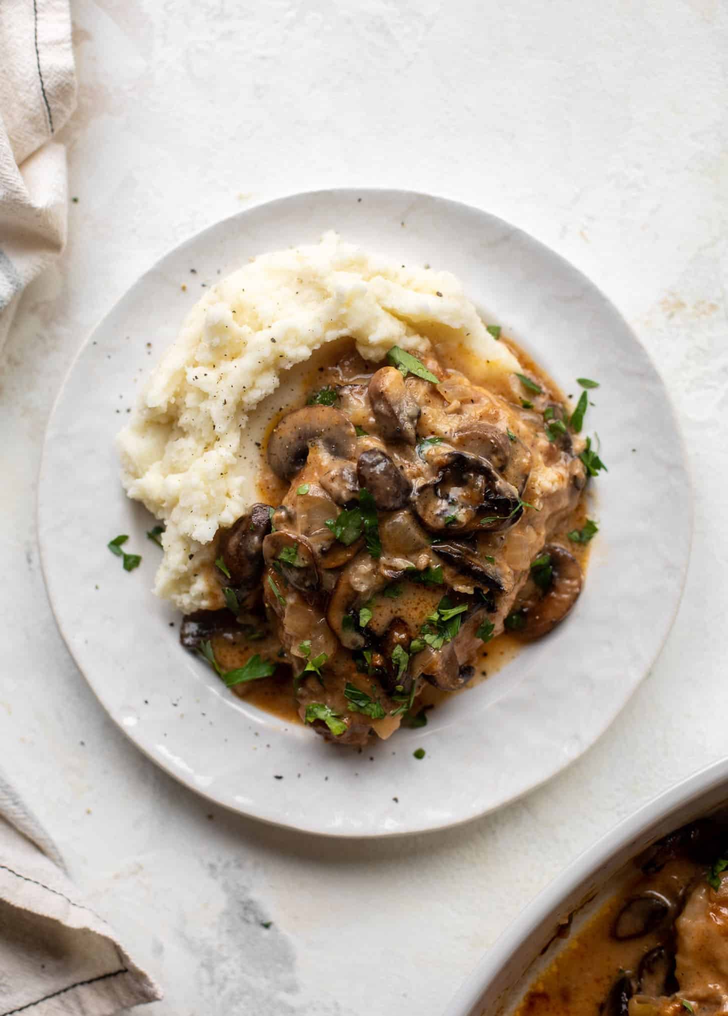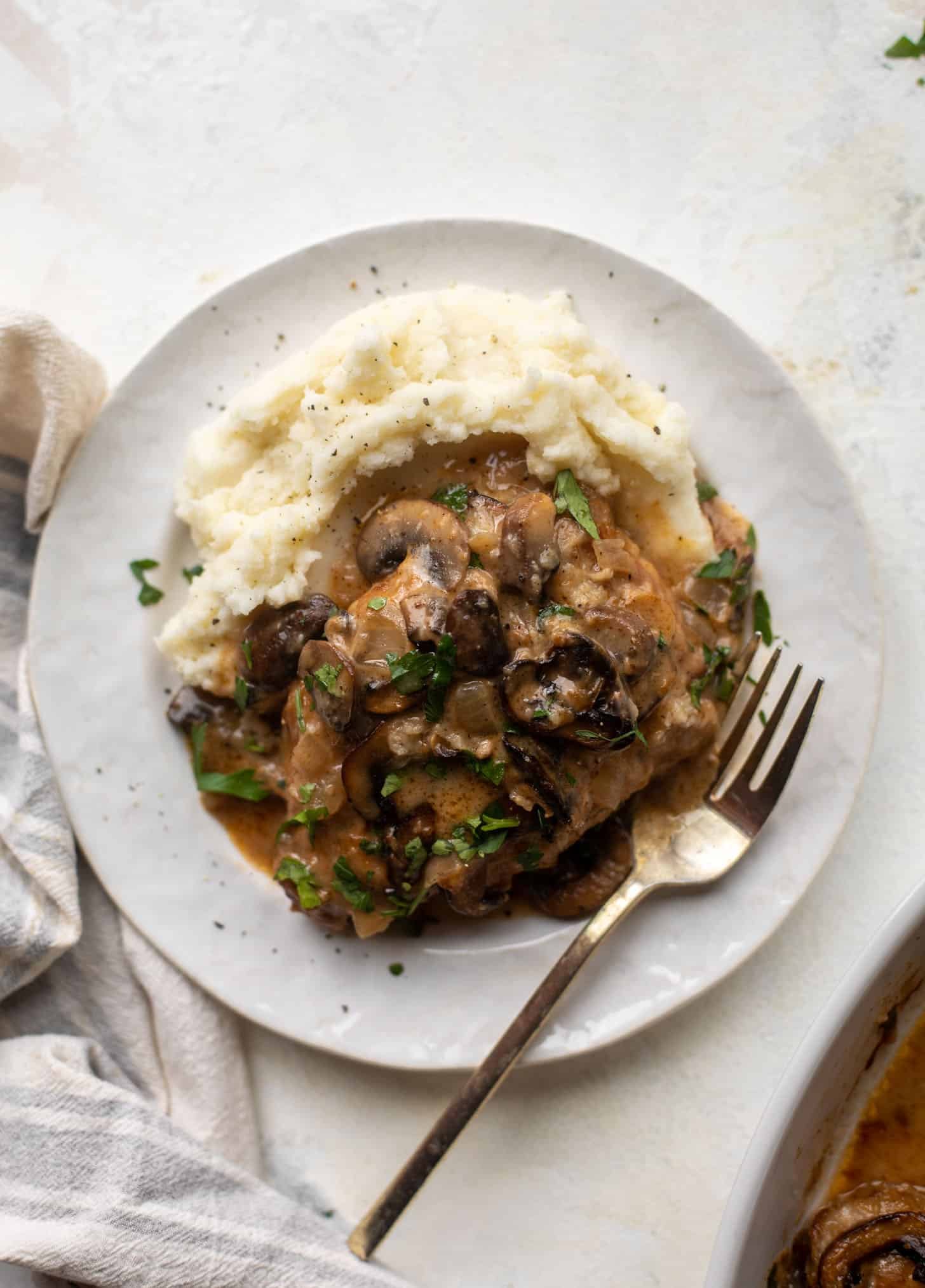 This post is sponsored by the National Pork BoardThis smoky pork marsala is a spin on our favorite chicken dish! Served over creamy mashed potatoes, it’s a cozy and comforting weeknight meal that everybody loves.