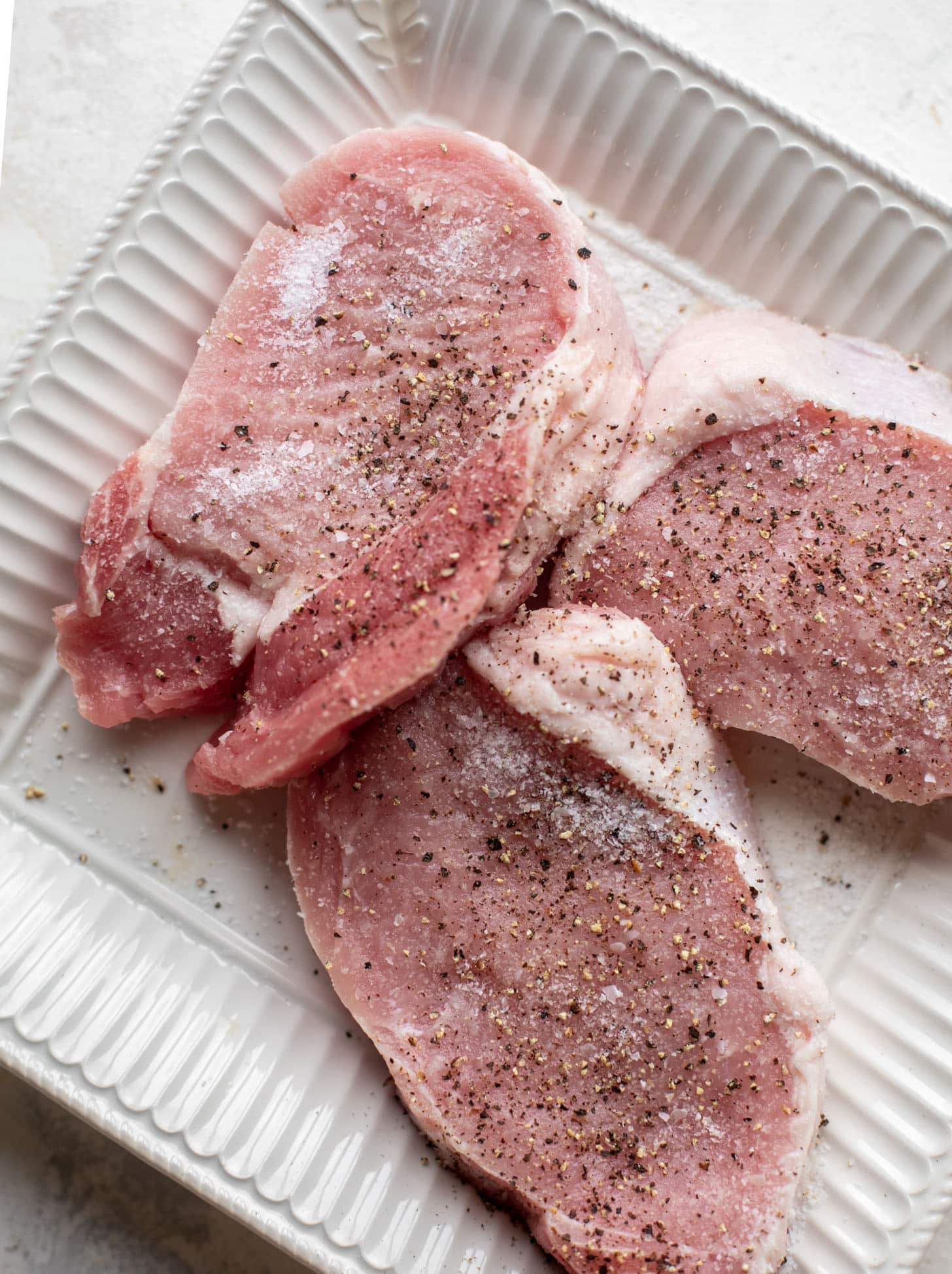 • A simple flour dredge with salt, pepper and smoked paprika goes on to the pork. It adds some crisp texture to the pork. My mom did this with her pork chops all the time and it makes for a wonderful cut of pork!