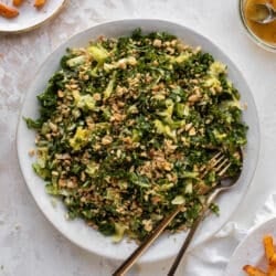 Another thing I love is that the kale and cabbage are sturdy enough to hold up awhile in the fridge. I still prefer them freshly tossed in the dressing, but if you end up with leftovers, they will be pretty darn good the next day.