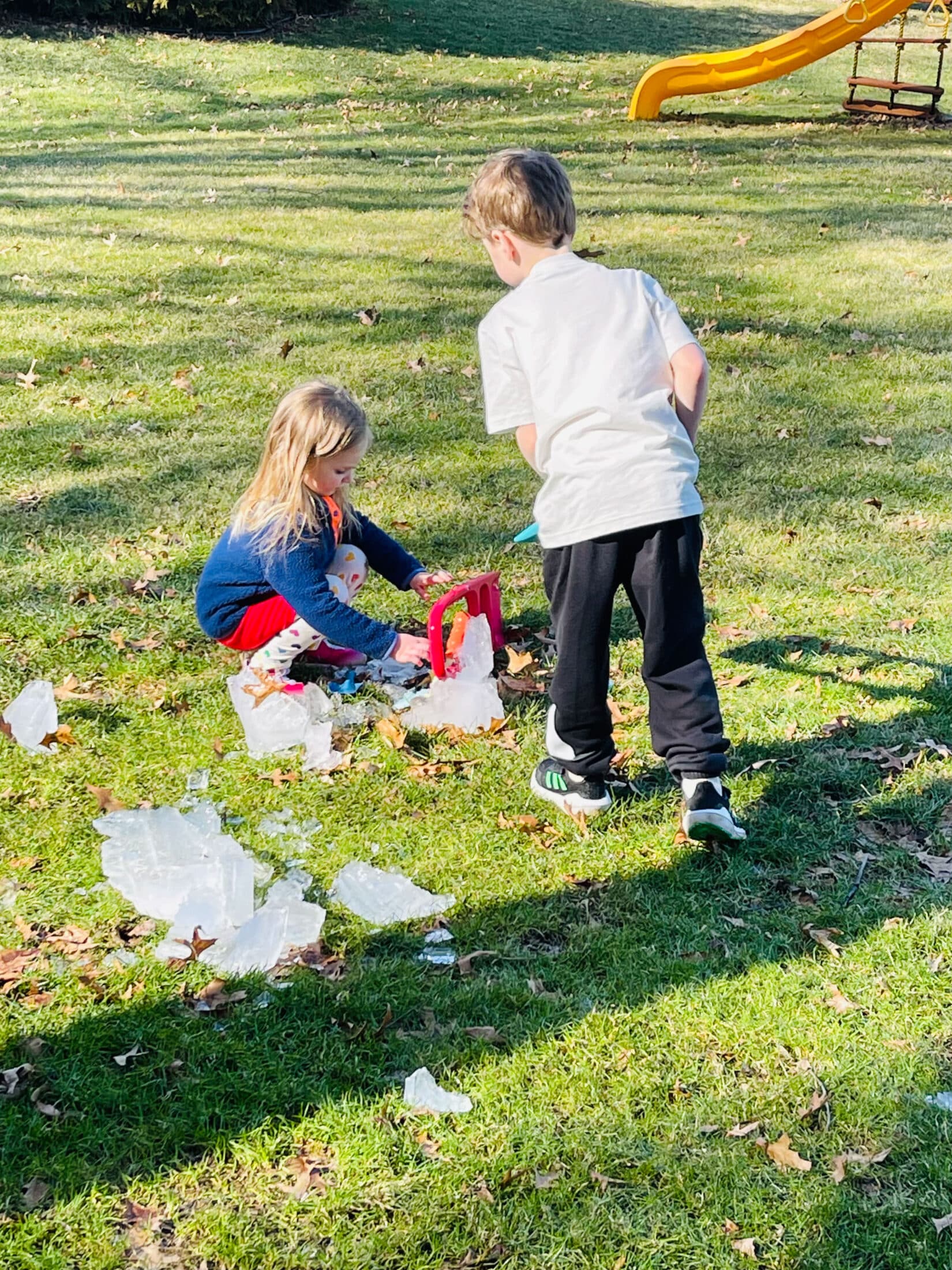 The start of our week was so warm! Like 60+ degrees. Leftover ice + sand shovels… fun.