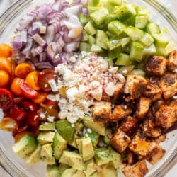 Chopped salads are my love language! While I’ve shared many in the past, my top two are probably this honey mustard chicken chopped salad and my cheeseburger chopped salad. Also, this BLT chopped salad is unreal.