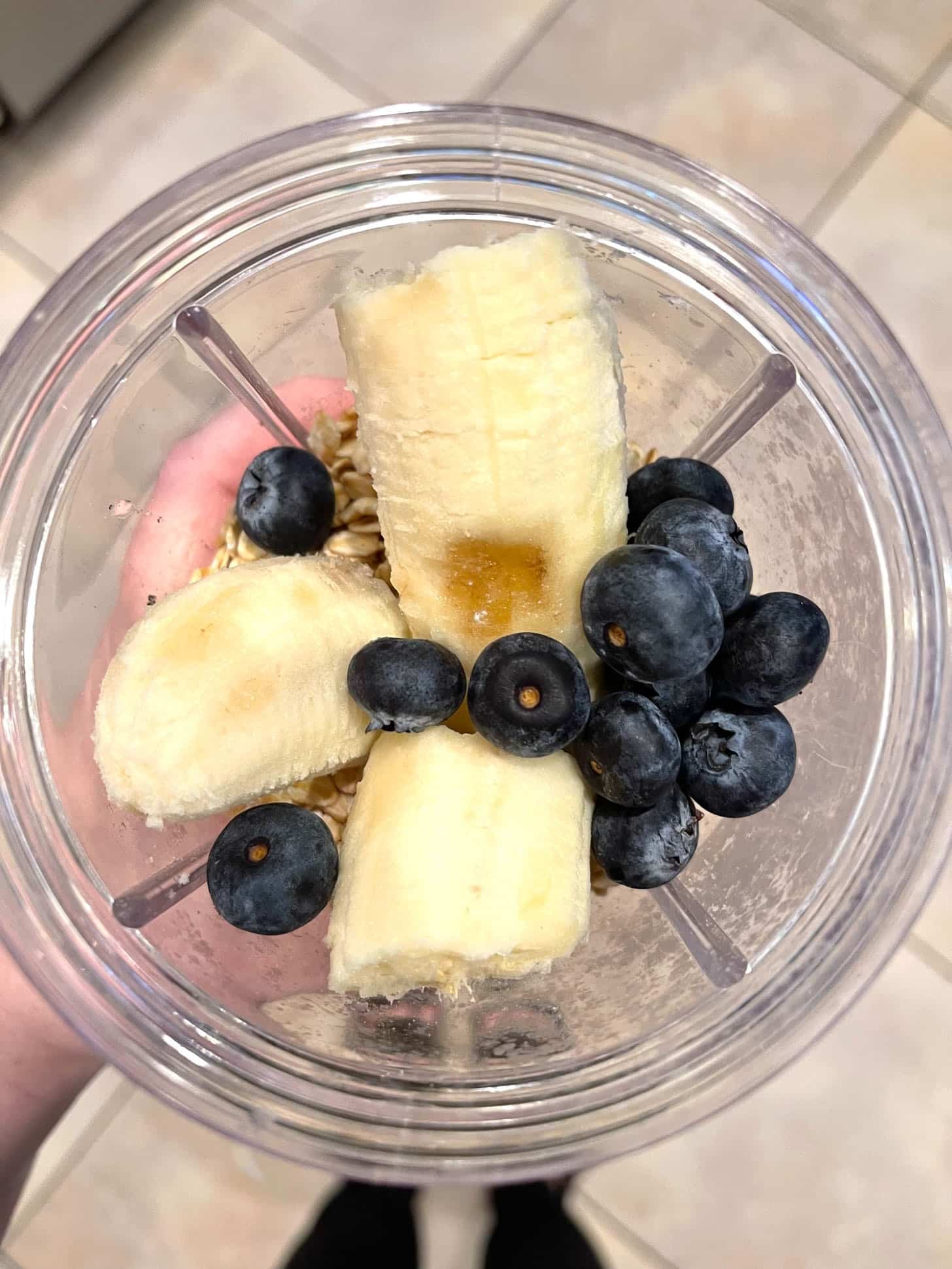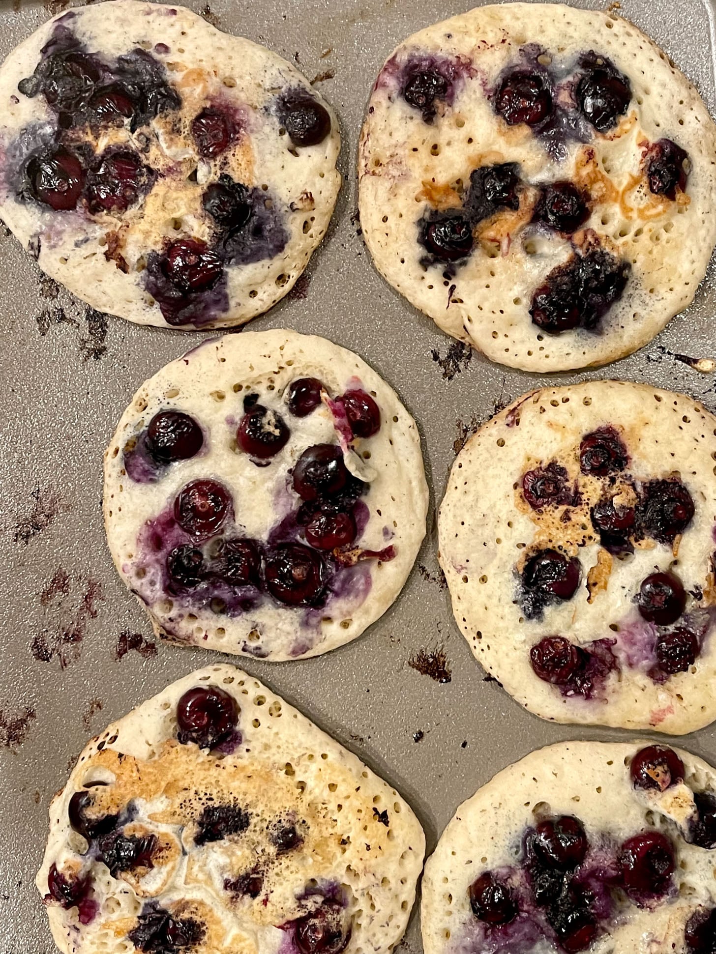 Made some baby pancakes for Jordan and added blueberries. I’ve made these for all the kids. Blend together 1 egg, 1 banana, about 2/3-3/4 c oats, 1/4 cup milk, vanilla extract, cinnamon and a handful of blueberries.
