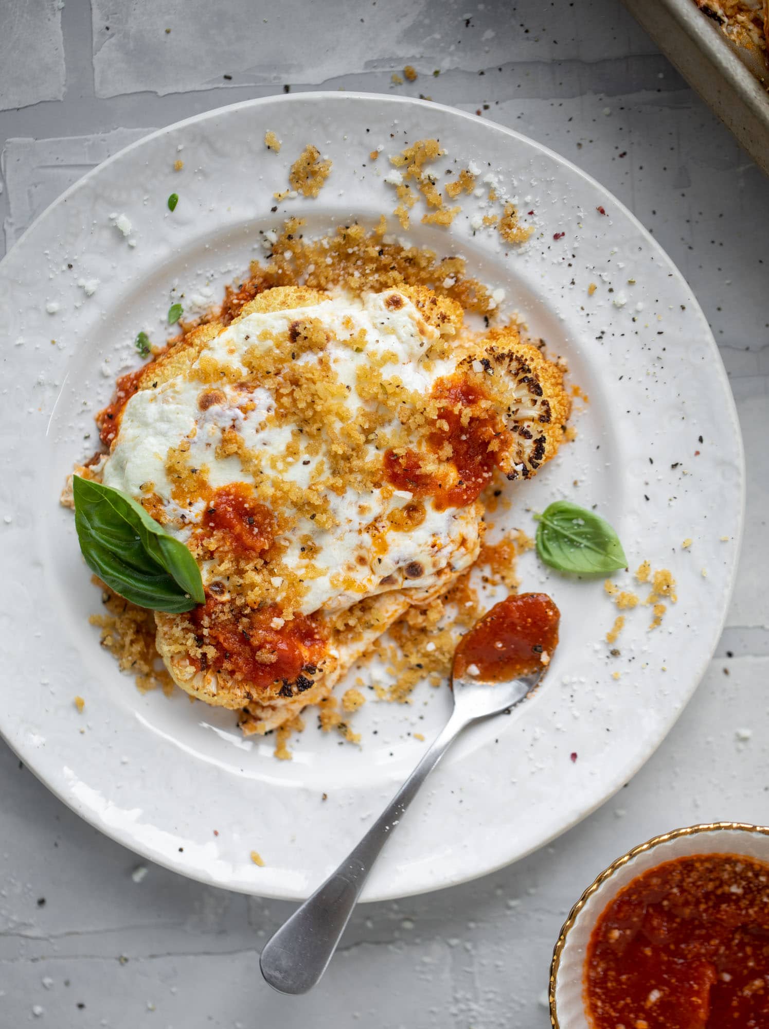 We LOVE this cauliflower parmesan and it is perfect served with my house salad.