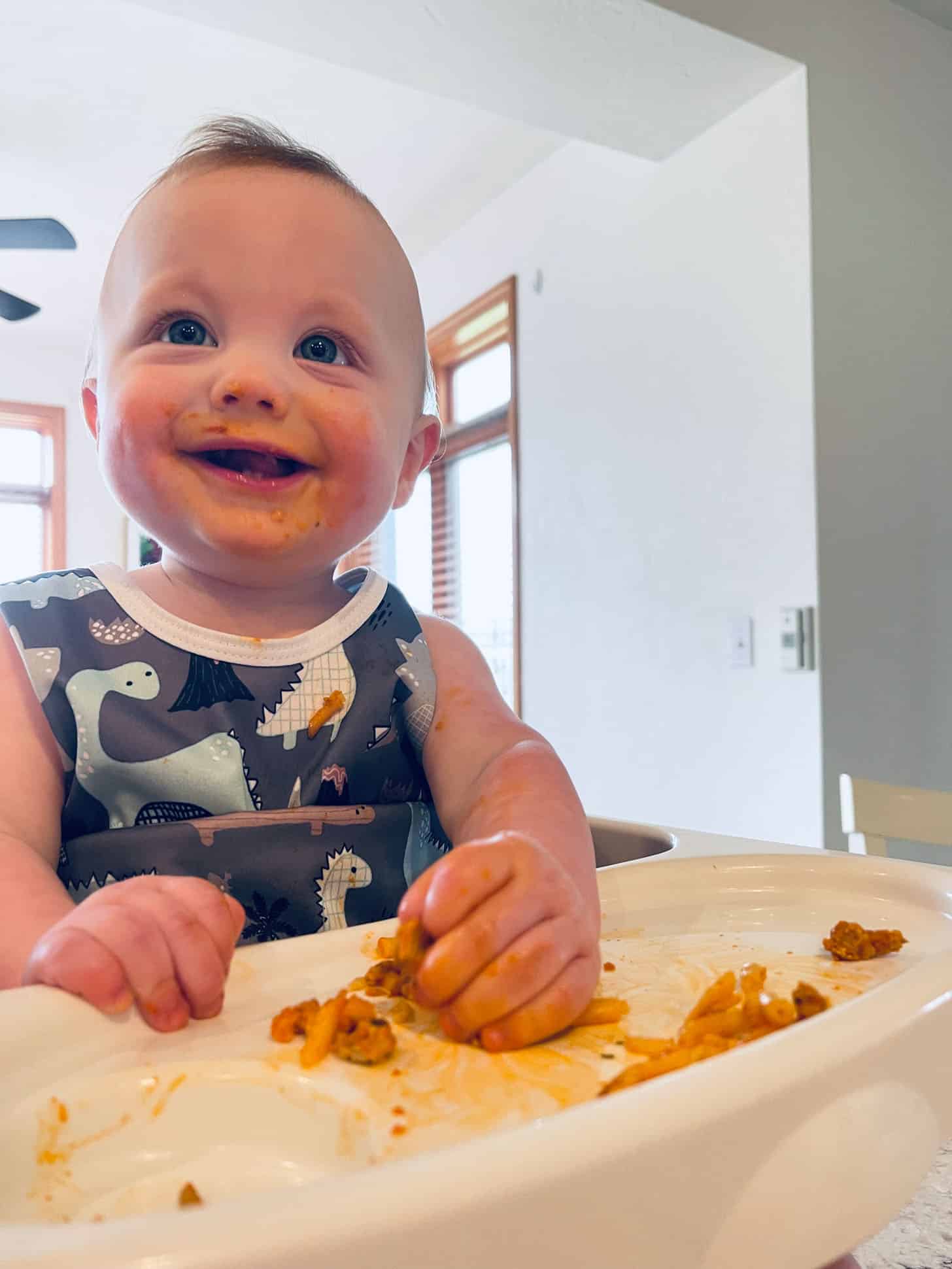 I don’t like messy kid photos but Jordan + the baked spaghetti!