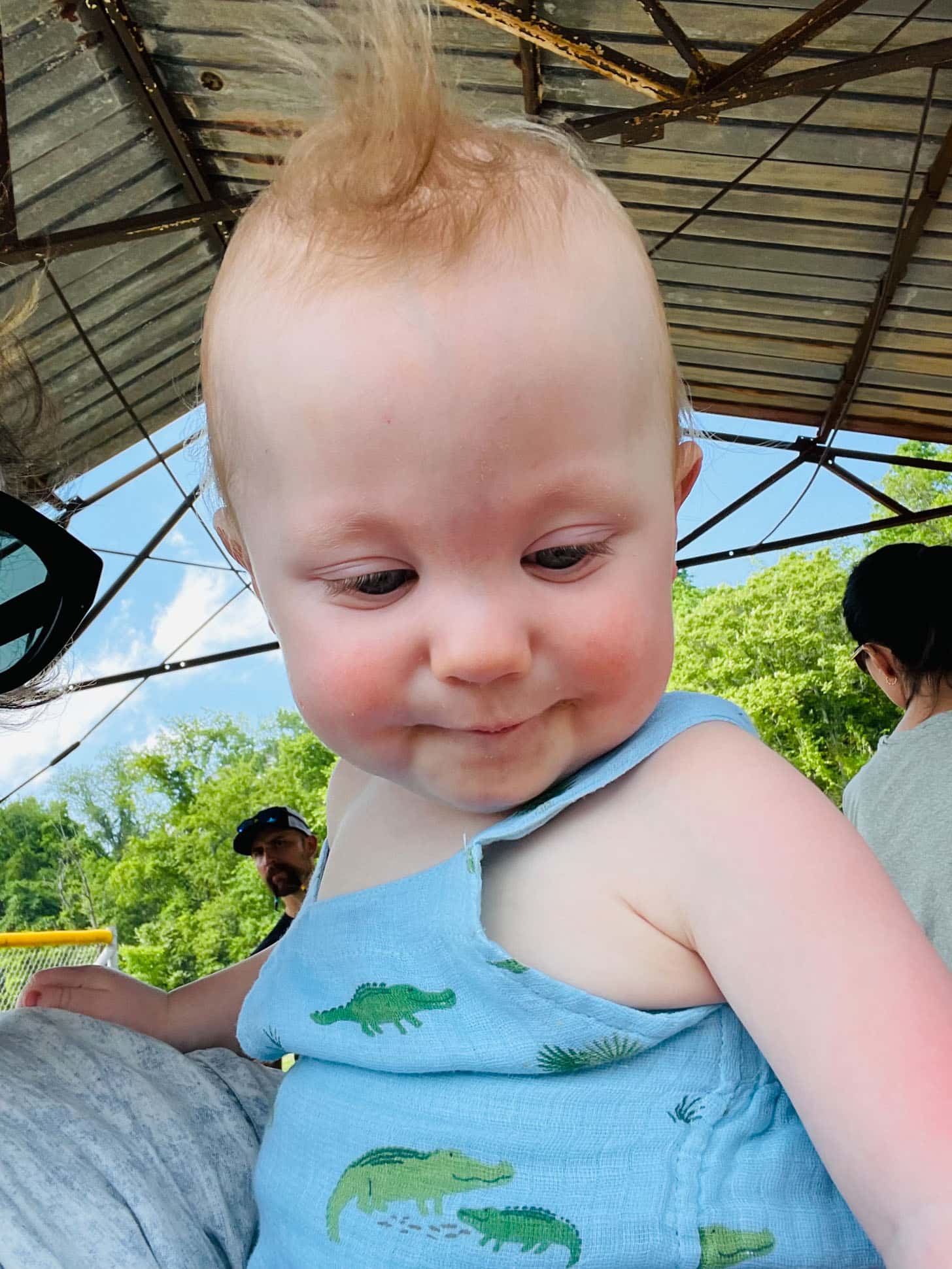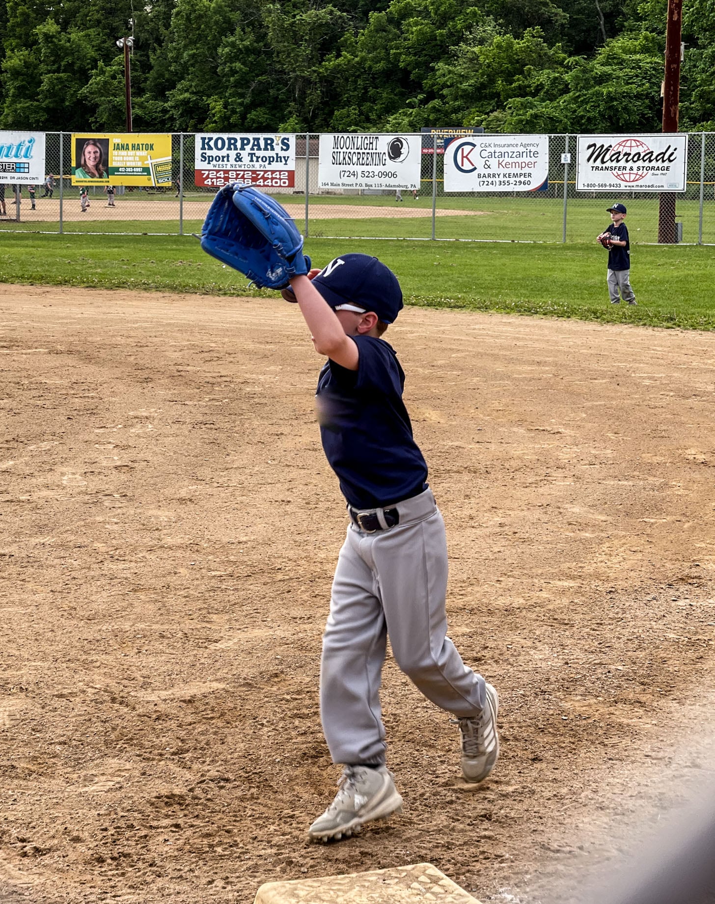 Jordan ate a soft pretzel at Max’s baseball game… I was wearing him in the carrier and he was losing.it. Like screaming and crying for the first time ever in the carrier. I thought maybe he wanted my dad, who was in his line of vision. Um, no. He wanted his soft pretzel. Double fisting.