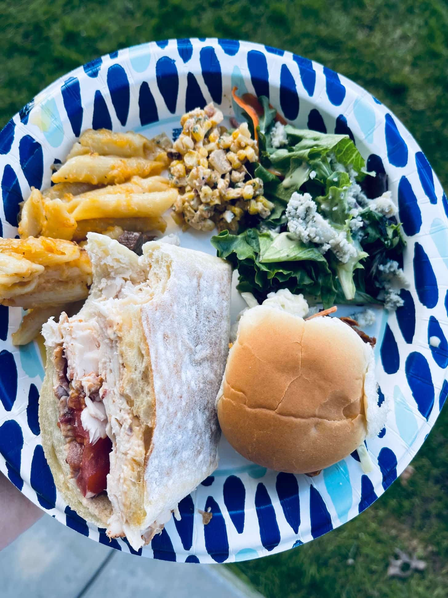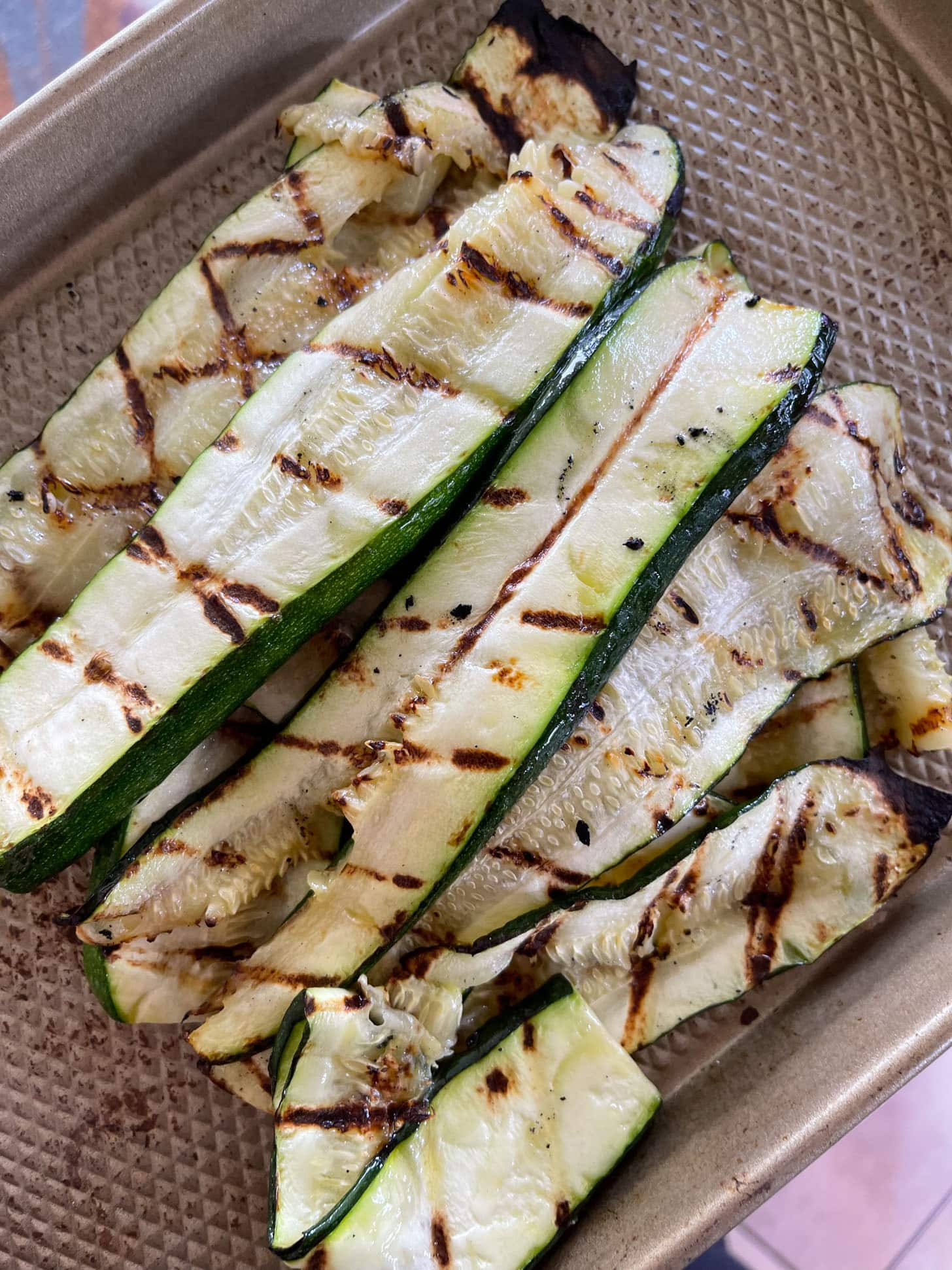 I also grilled some zucchini because I made Elin Hilderbrand’s grilled zucchini dip. It’s so good – she posted it a few years ago on IG. You grill 3 or 4 strips of zucchini, then blend them. Add in 1/2 cup sour cream, juice of 1 lime, 1/2 cup mint and lots of salt and pepper. Make it the day before – it gets better as it sits.